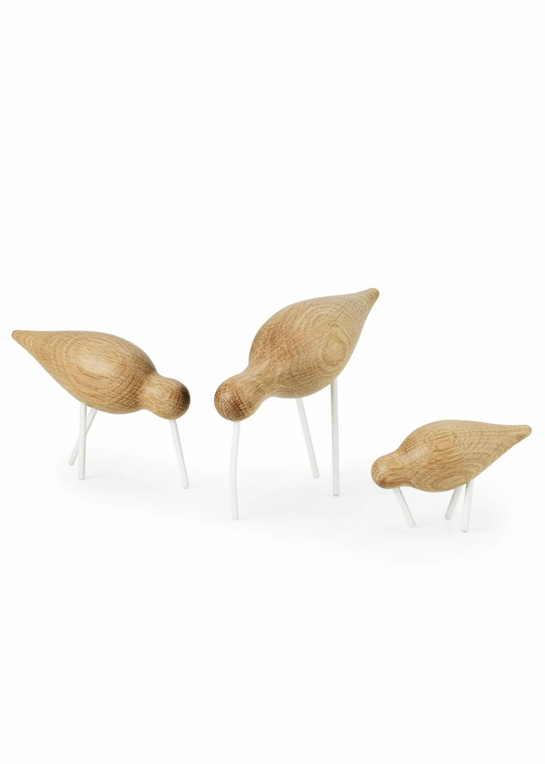 Shorebird is a decorative wooden bird from Normann Copenhagen. The birds are stylish and the variations in the body of the birds each give them their unique personality and make the design come alive. The figure is available in oak, ash or walnut and the legs in lacquered or brass coated steel. Clean the figure with a damp cloth for maintenance.