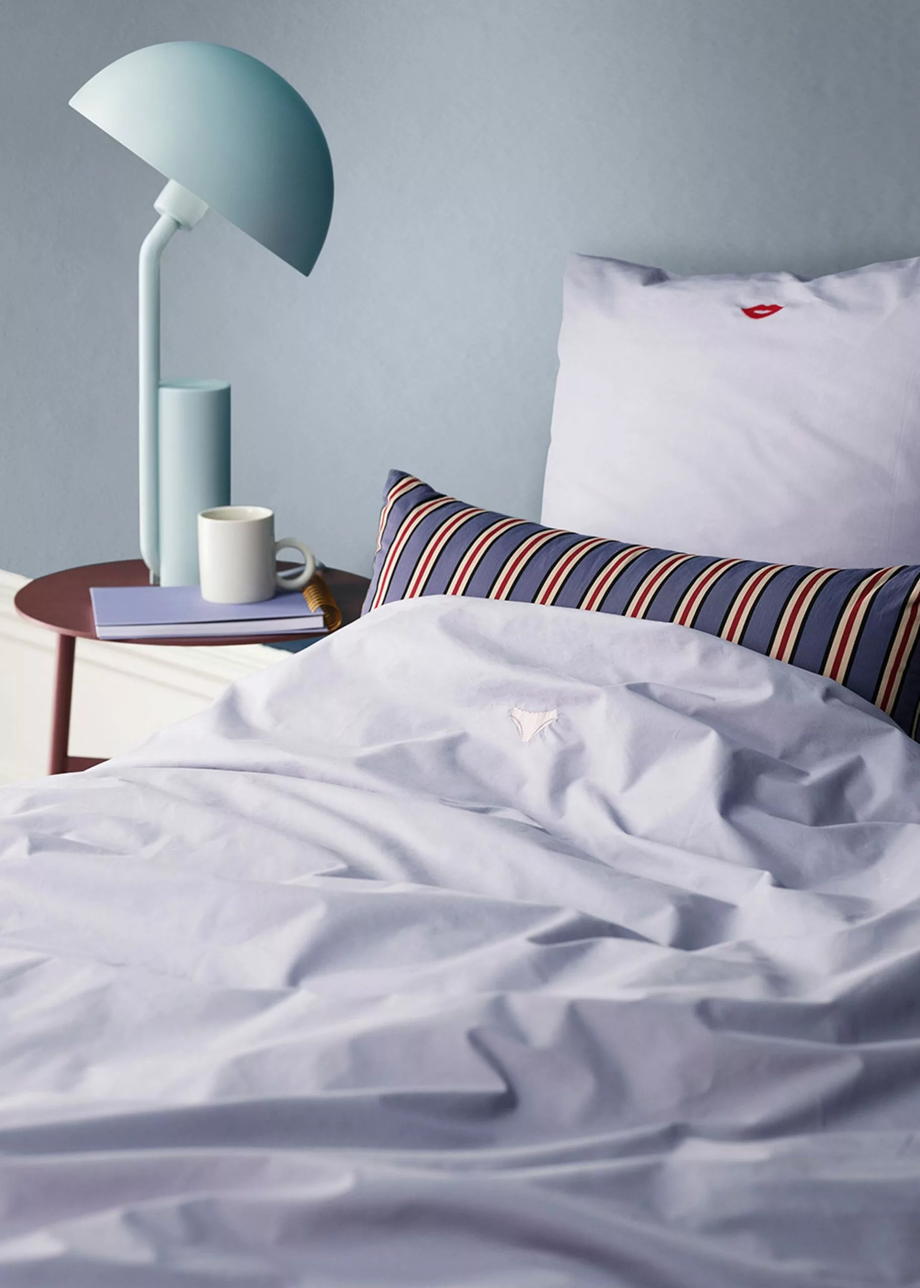 Snooze is a bed sheet from Normann Copenhagen. The bed sheet consists of a pillowcase with envelope closure and a duvet cover with a hidden zipper at the bottom. The bed linen is made of 100% OEKO-TEX cotton. The bed sheet is available in four different sizes and five different colors. Each variant comes with unique embroidery on the front and a matching bag with drawstring.