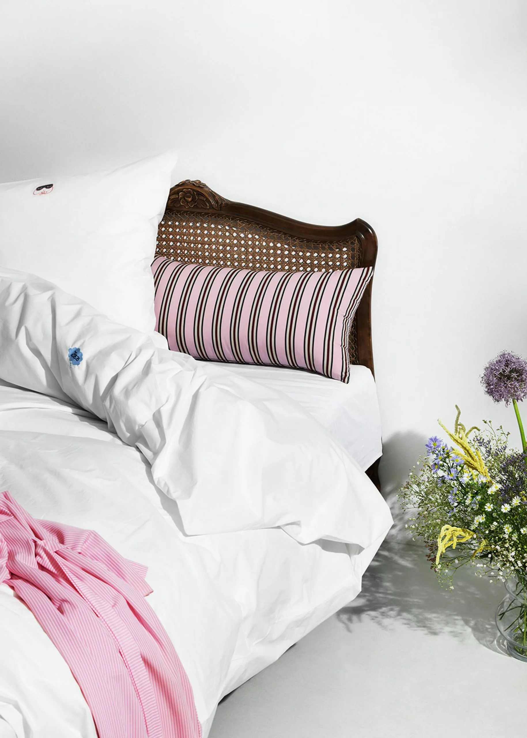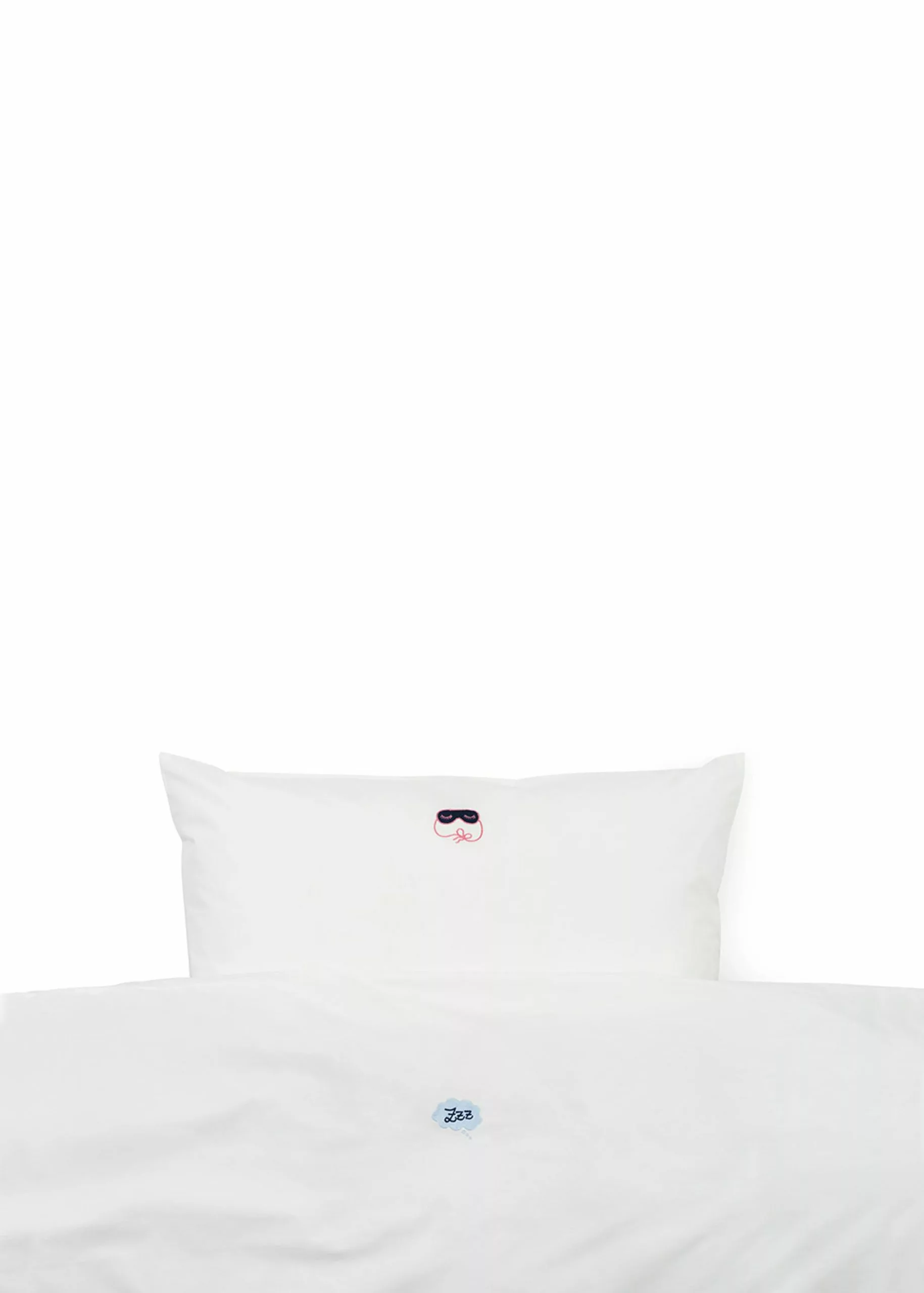 Snooze is a bed sheet from Normann Copenhagen. The bed sheet consists of a pillowcase with envelope closure and a duvet cover with a hidden zipper at the bottom. The bed linen is made of 100% OEKO-TEX cotton. The bed sheet is available in four different sizes and five different colors. Each variant comes with unique embroidery on the front and a matching bag with drawstring.