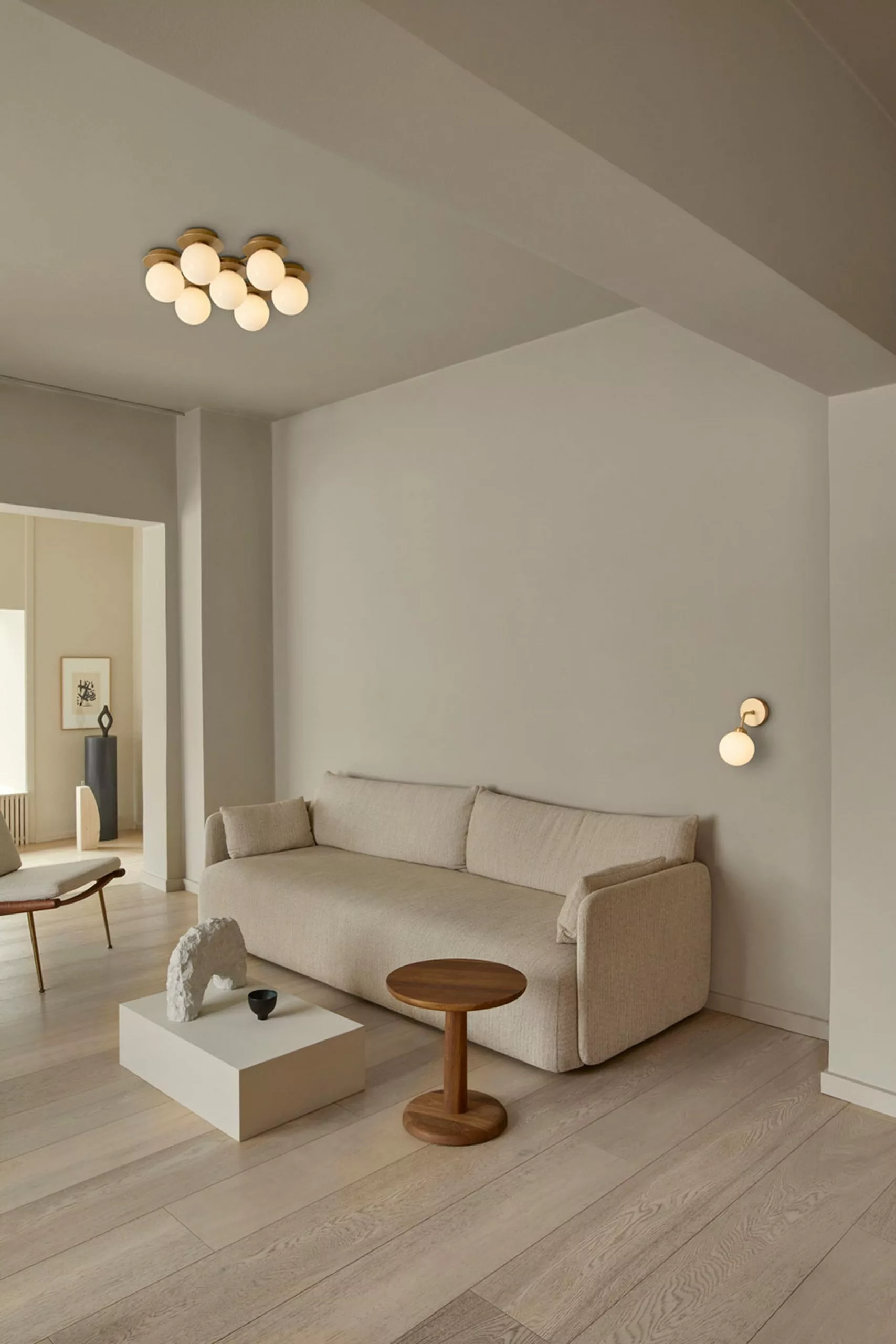 Beautiful and simple wall lamp in glass designed by Sofie Refer. The wall lamp's design is inspired by a small flower plucked from Nuura's popular chandelier. Use the wall lamp in the entrance hall, next to the mirror in the bathroom or as a bedside lamp.