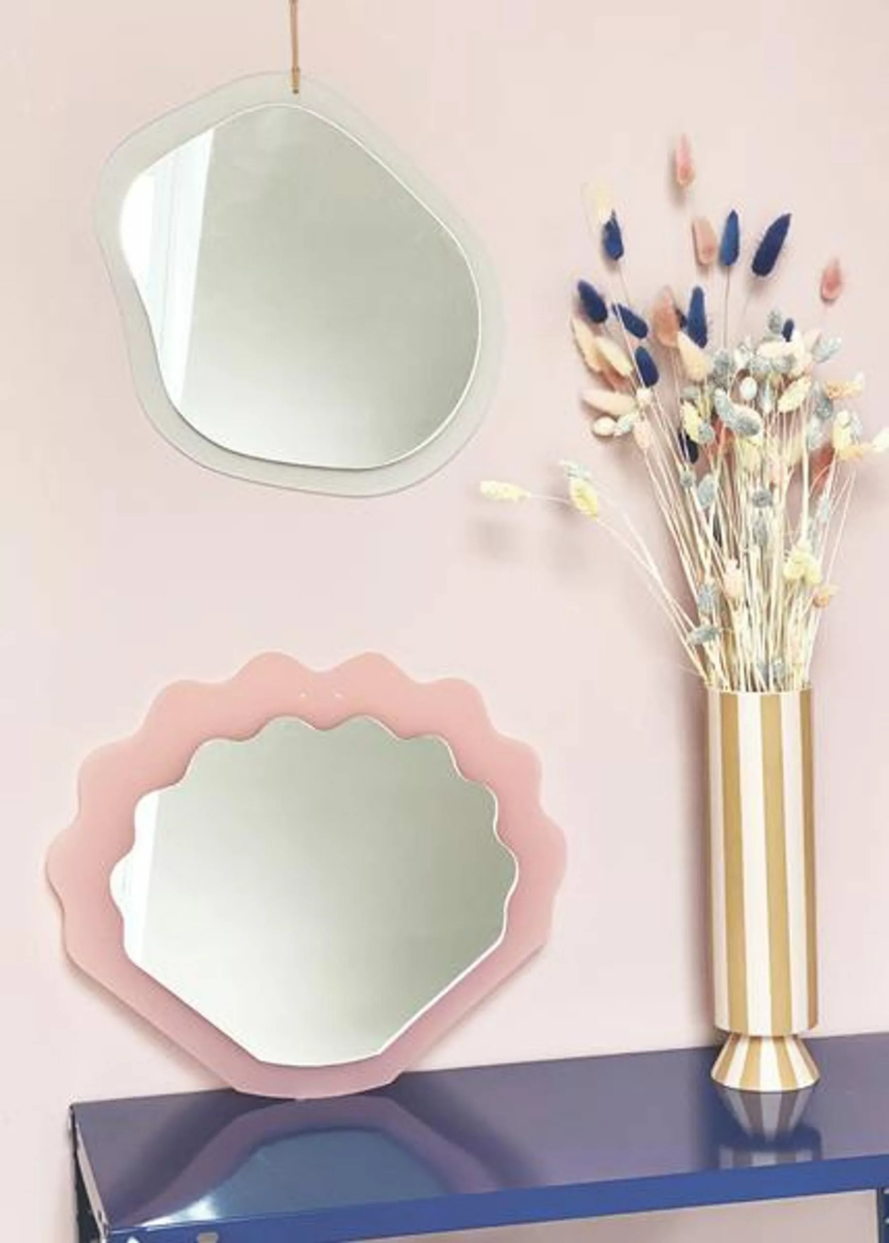 The most beautiful mirror that shapes itself like a fine seashell. The mirror is in 2 layers of acrylic. The mirror is made in Denmark.
