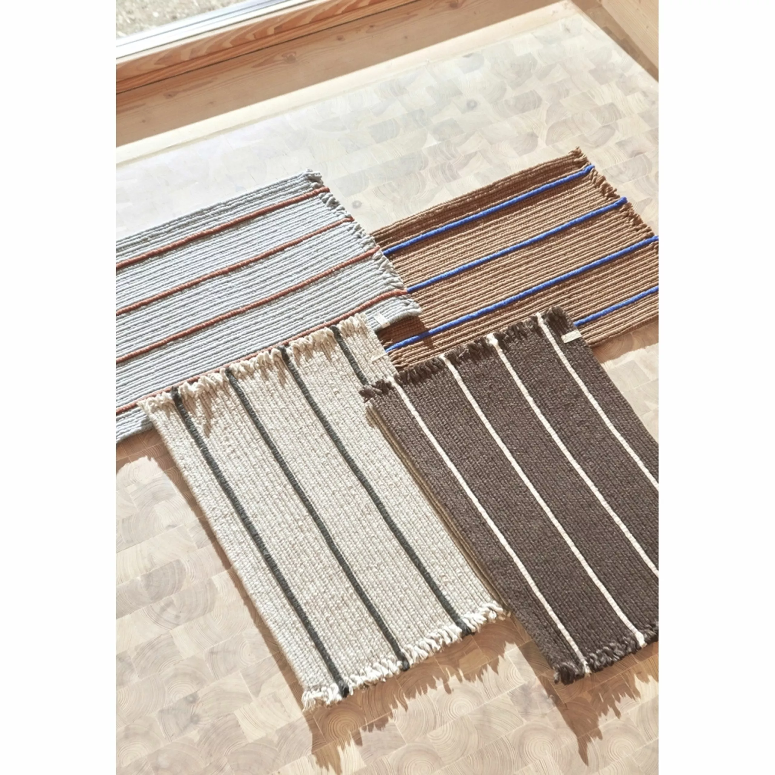 Elegant doormats made of recycled polyester. The doormats have a striped design, with fringes and beautiful colours. Make your hallway more charming and choose between four different colour combinations.
