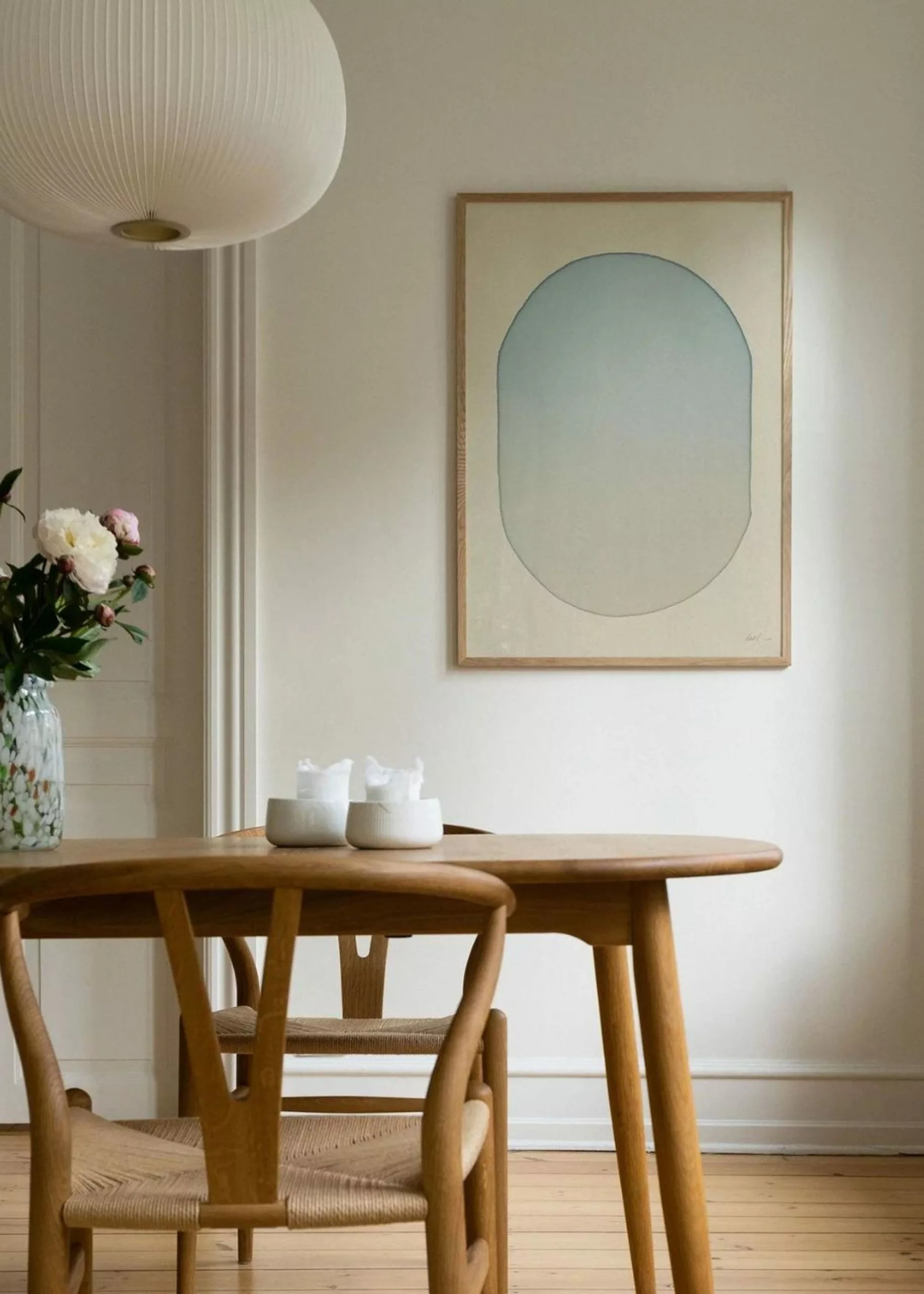 ESTRE #3 is designed by Harrt Studio. The poster is a minimalist poster, where the poster does not focus on a motif, but instead a feeling and an impression. The poster is therefore open to free interpretation. The beautiful pastel blue color graduates slowly, which creates dynamics, and is therefore perfectly paired with the poster's neutral beige background.