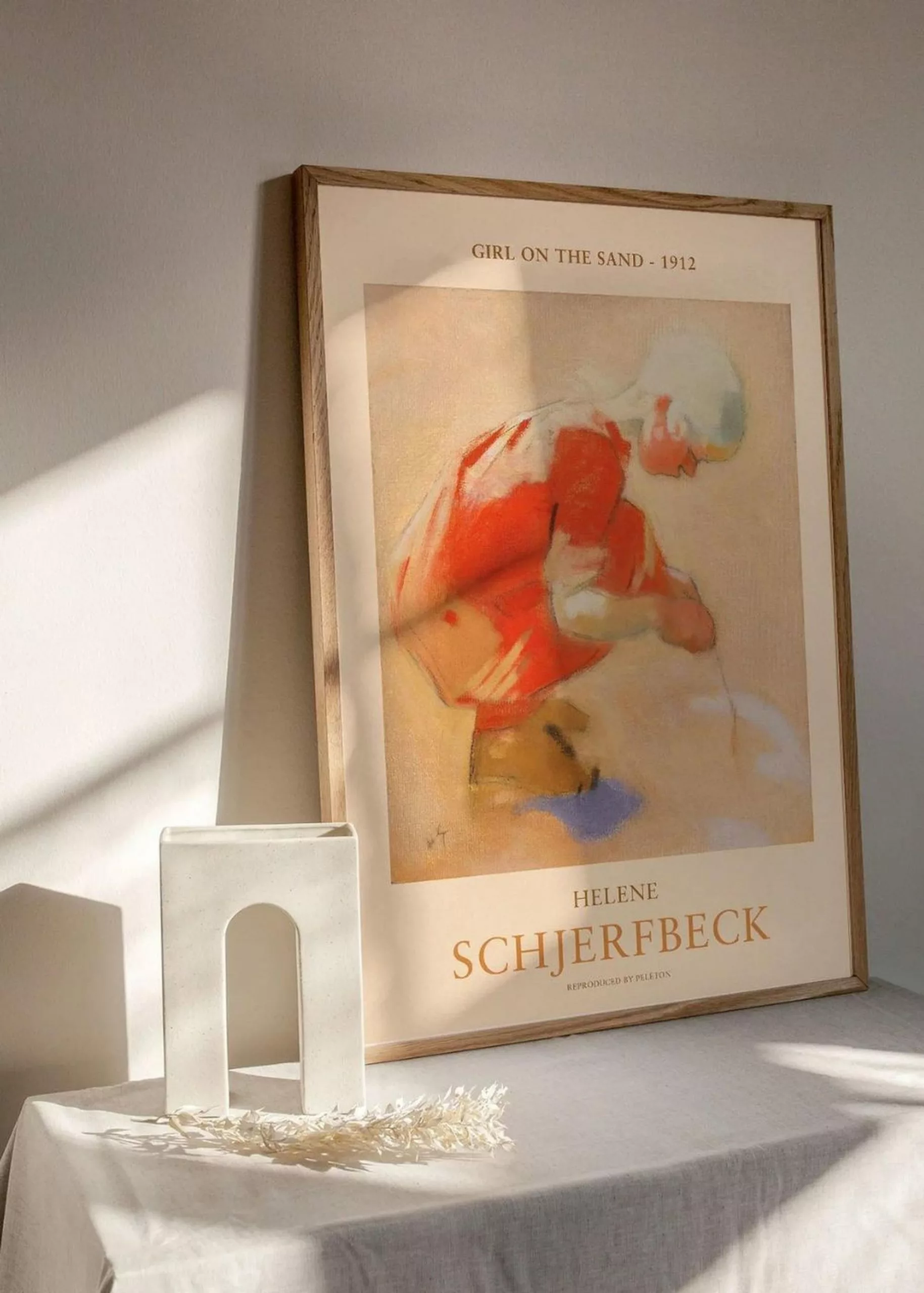 Girl on the sand is designed by artist Helene Schjerfbeck. The poster is a beautiful and atmospheric poster with an illustration of a little girl on the beach. Its design has a soft and detailed style in beautiful warm shades, creating a calm and relaxed atmosphere in any room.