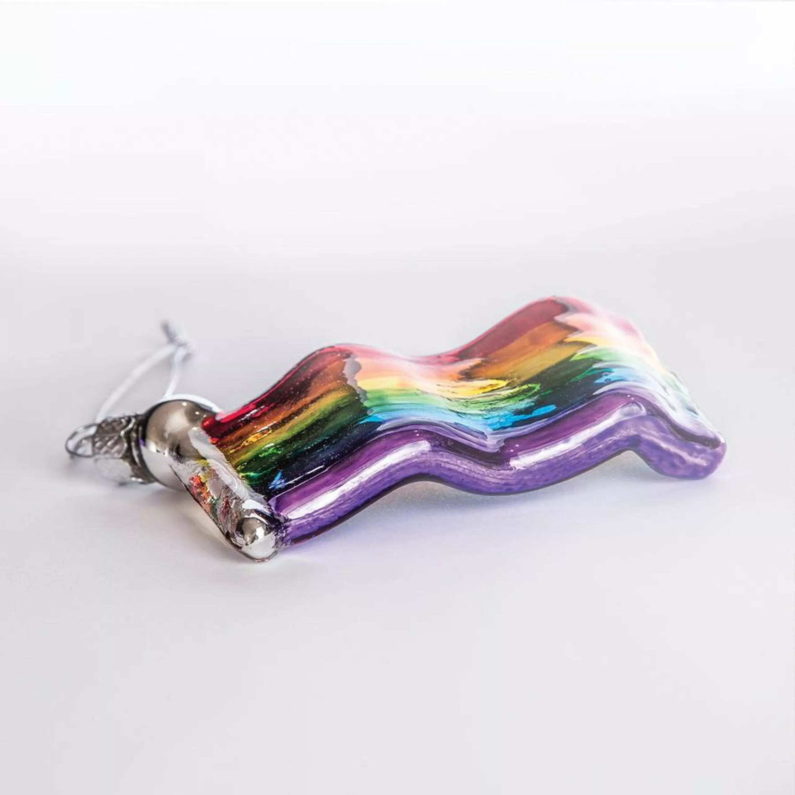 The product is made of mouth-blown glass and is hand-painted in bright colors in honor of the rainbow flag known as the key symbol of the LGBTQI community and the pride movement around the world.