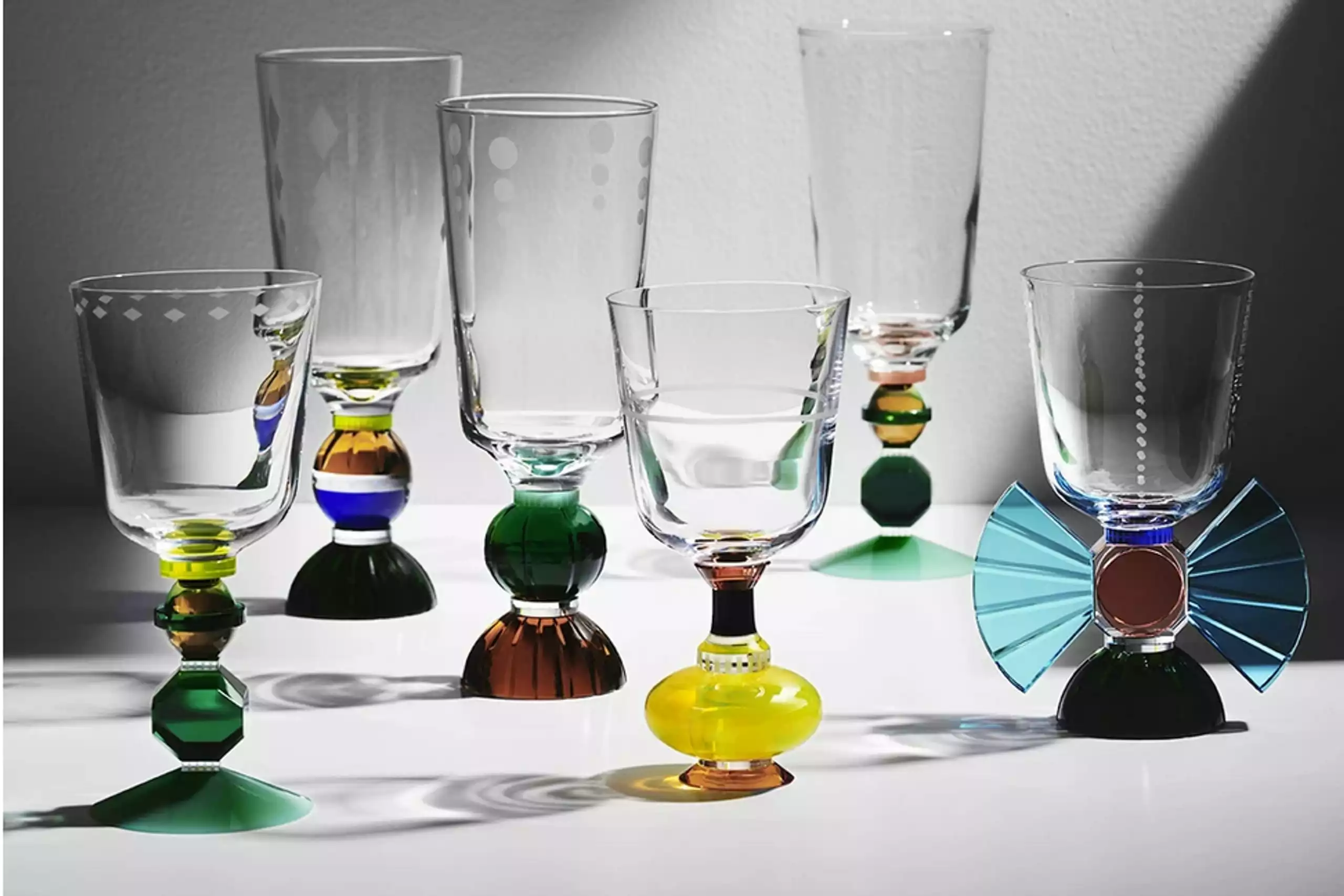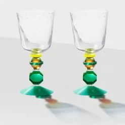 Mayfair Short Crystal Glass are elegant glasses with jewel-toned stems. Their symmetrical shapes can easily be combined with other frames. The unique glasses will add play to the table and create a colourful atmosphere.