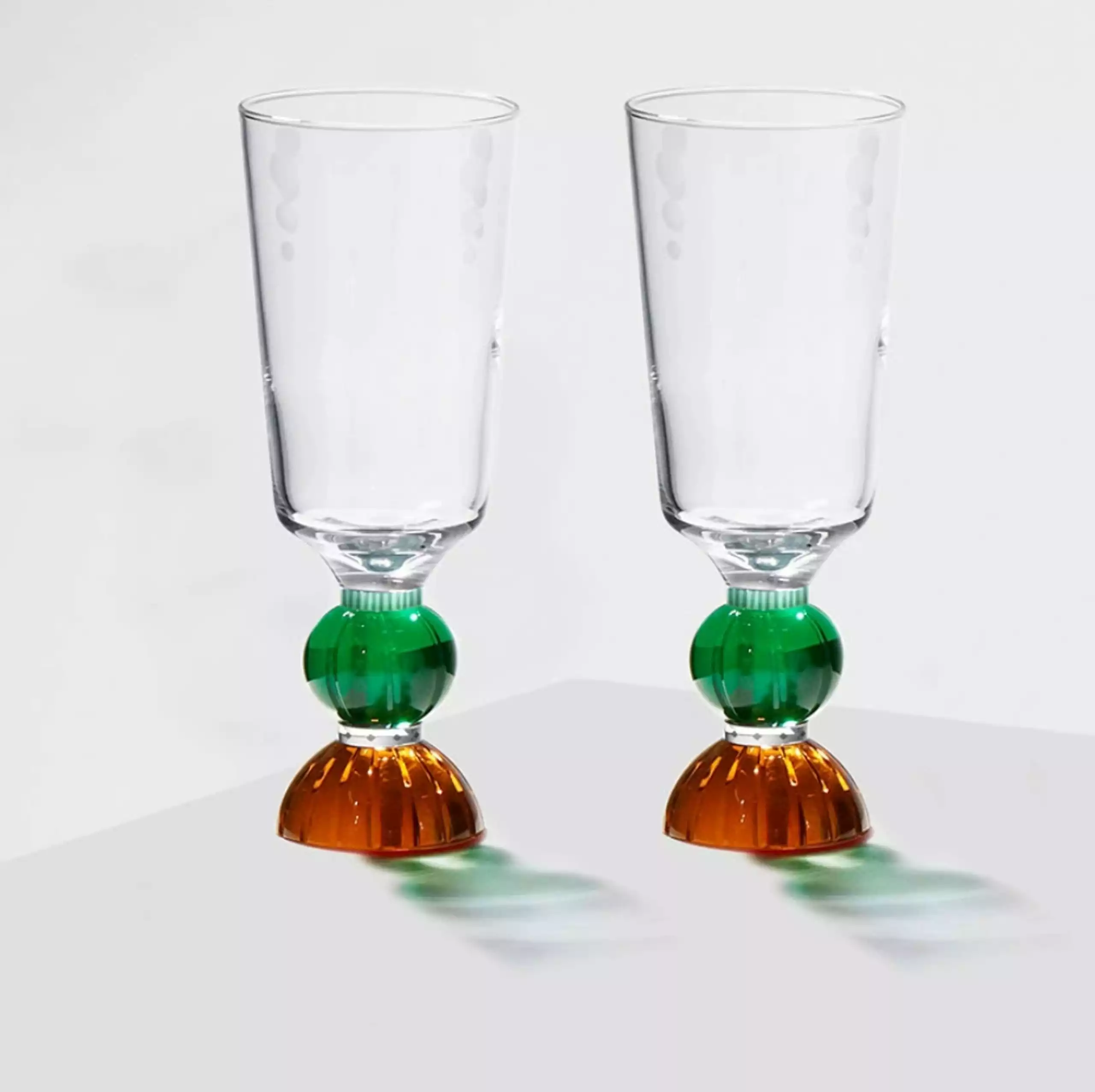 Windsor Tall Crystal Glass is crystal glass with jewel-toned stems. The unique symmetrical shapes of the stems create an elegant atmosphere on the table. The Windsor Tall Crystal Glasses are made of fine hand-cut crystal glass. Their feminine look can easily be combined with other sets to make them more rustic. The glasses come in a box of two.