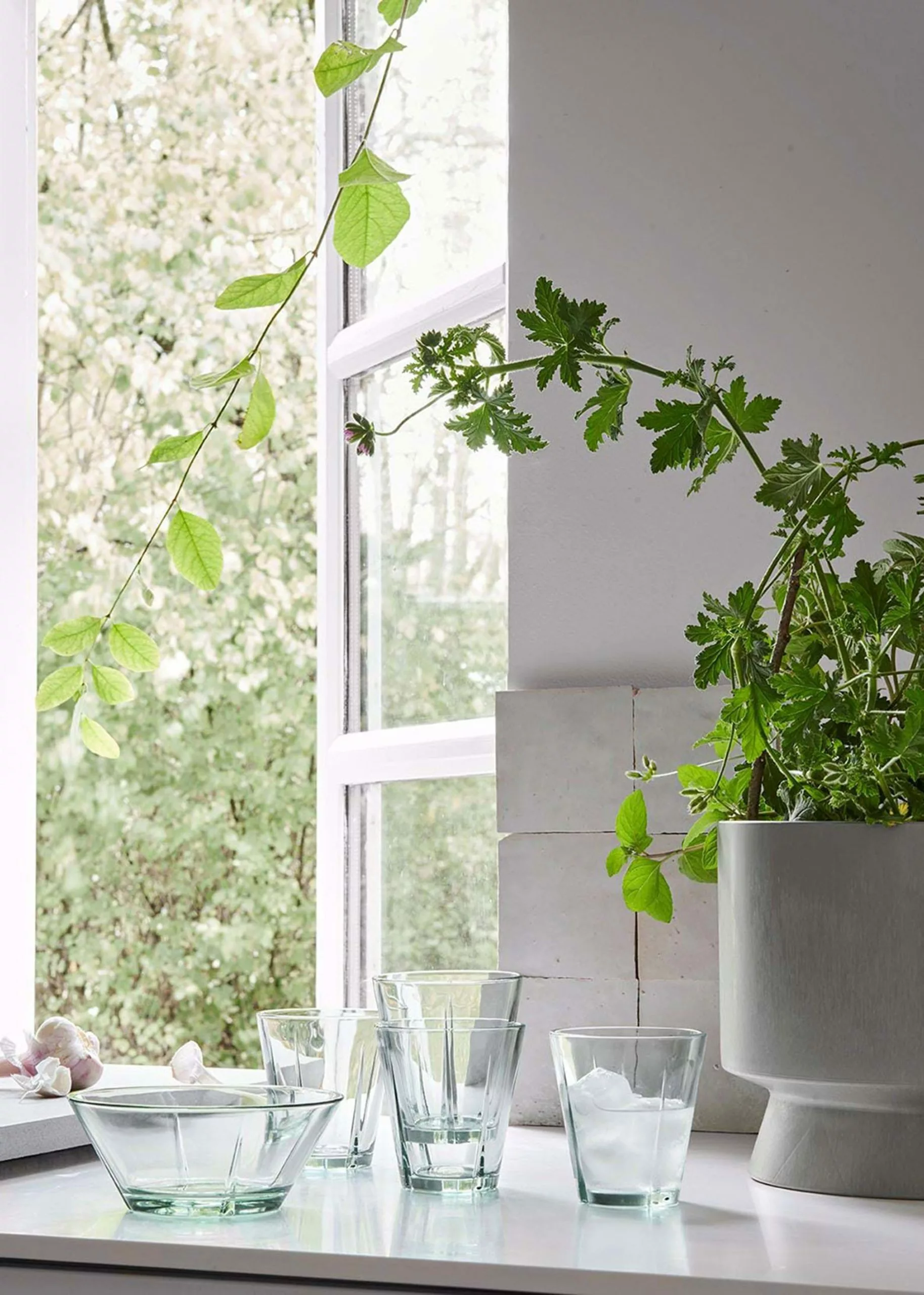 Rosendahl is best known for its classic designs that never go out of fashion, but are far from afraid to adapt to today's needs. The focus on our responsibility to the environment and its resources has grown and so has that of Rosendahl. The 'Grand Cru' series is characteristic of Rosendahl's design universe, and a set that can be found in most homes, both nationally and internationally. The new 'Grand Cru Recycled' series maintains the iconic design, with the beautiful diagonal lines and deep grooves in the side. But the idea behind is renewed and the bowls are now made of recycled glass. Not only do the bowls have a beautiful blue-green hue, as is often seen with recycled glass, but they help to give old products a new lease of life.