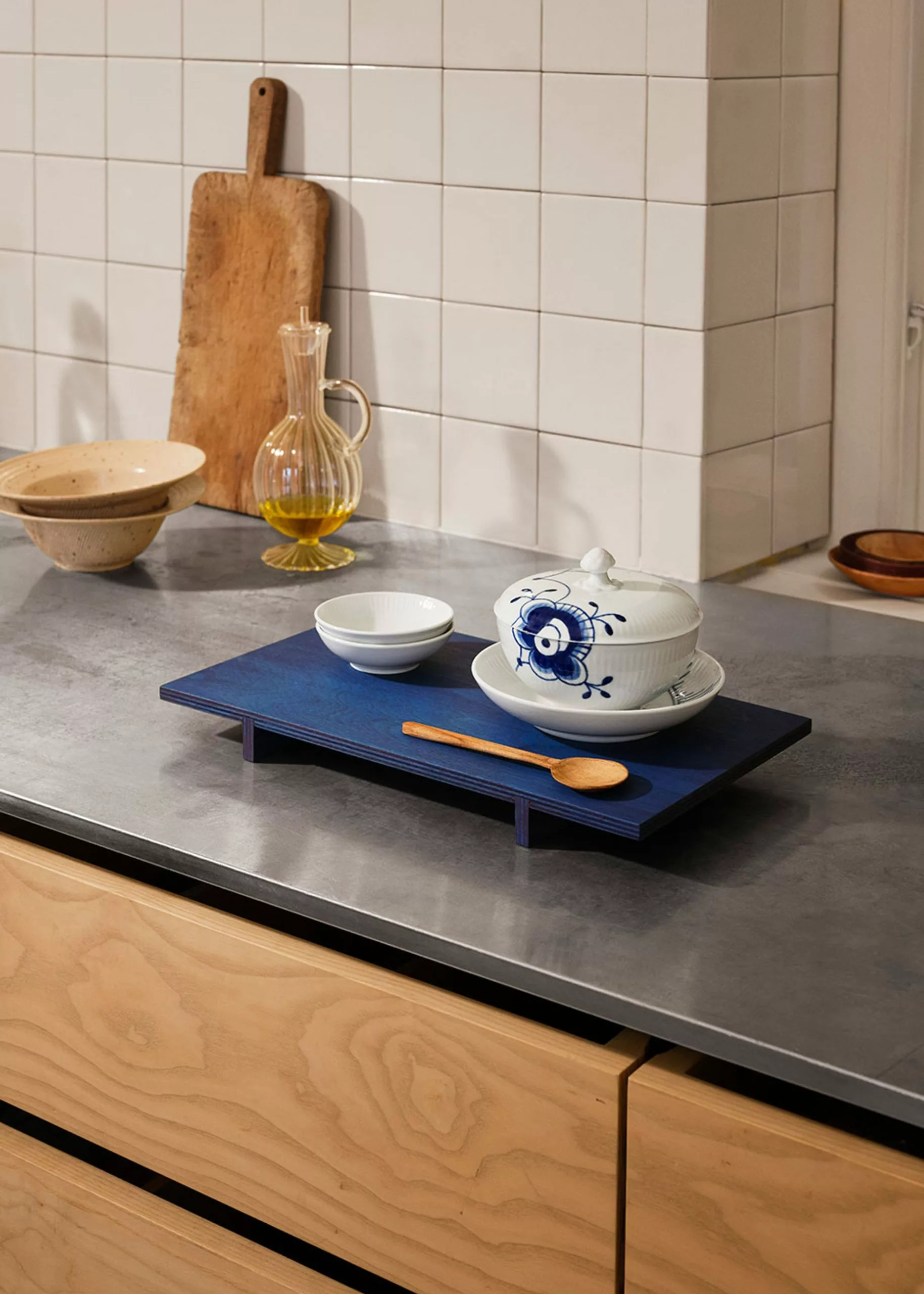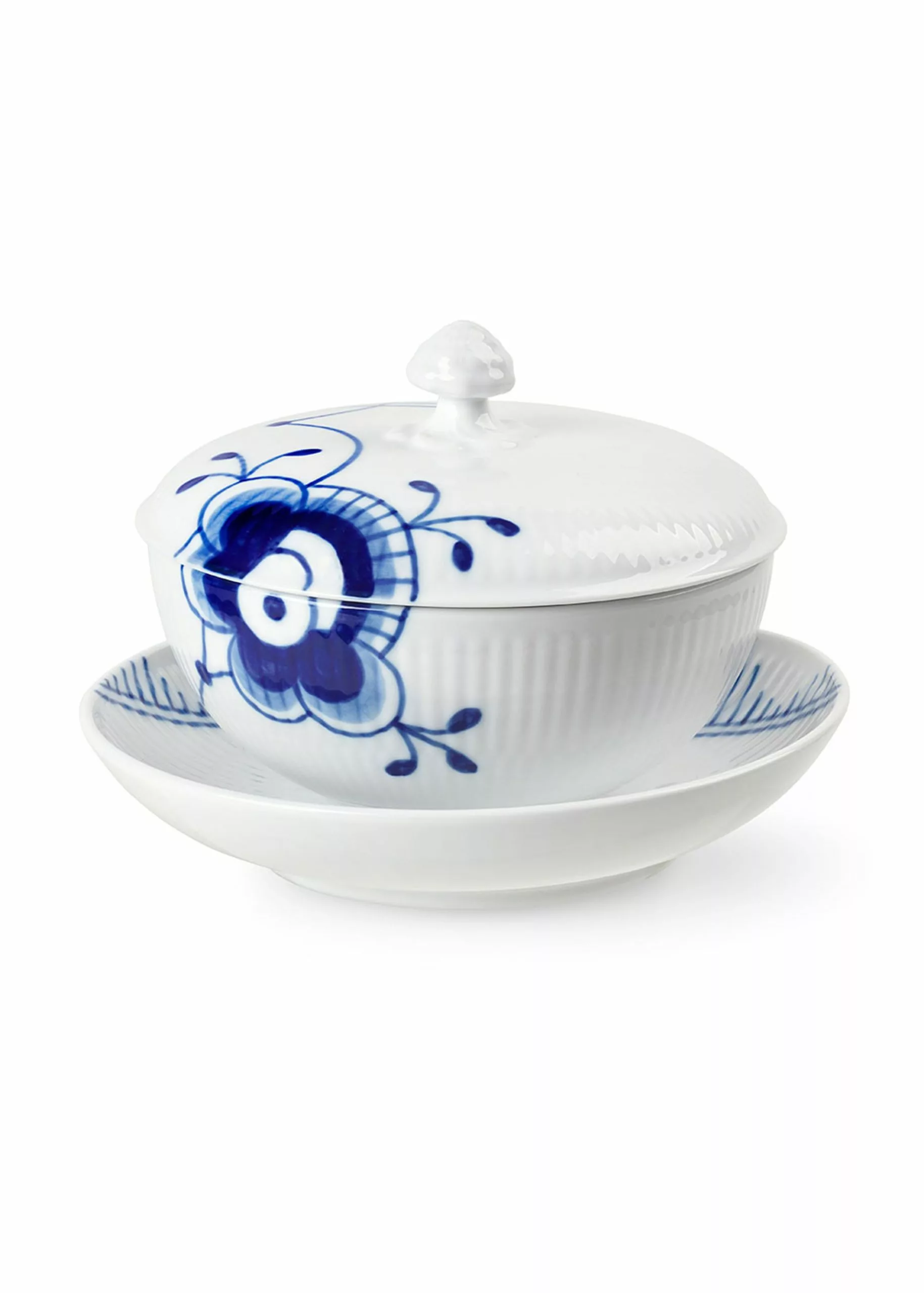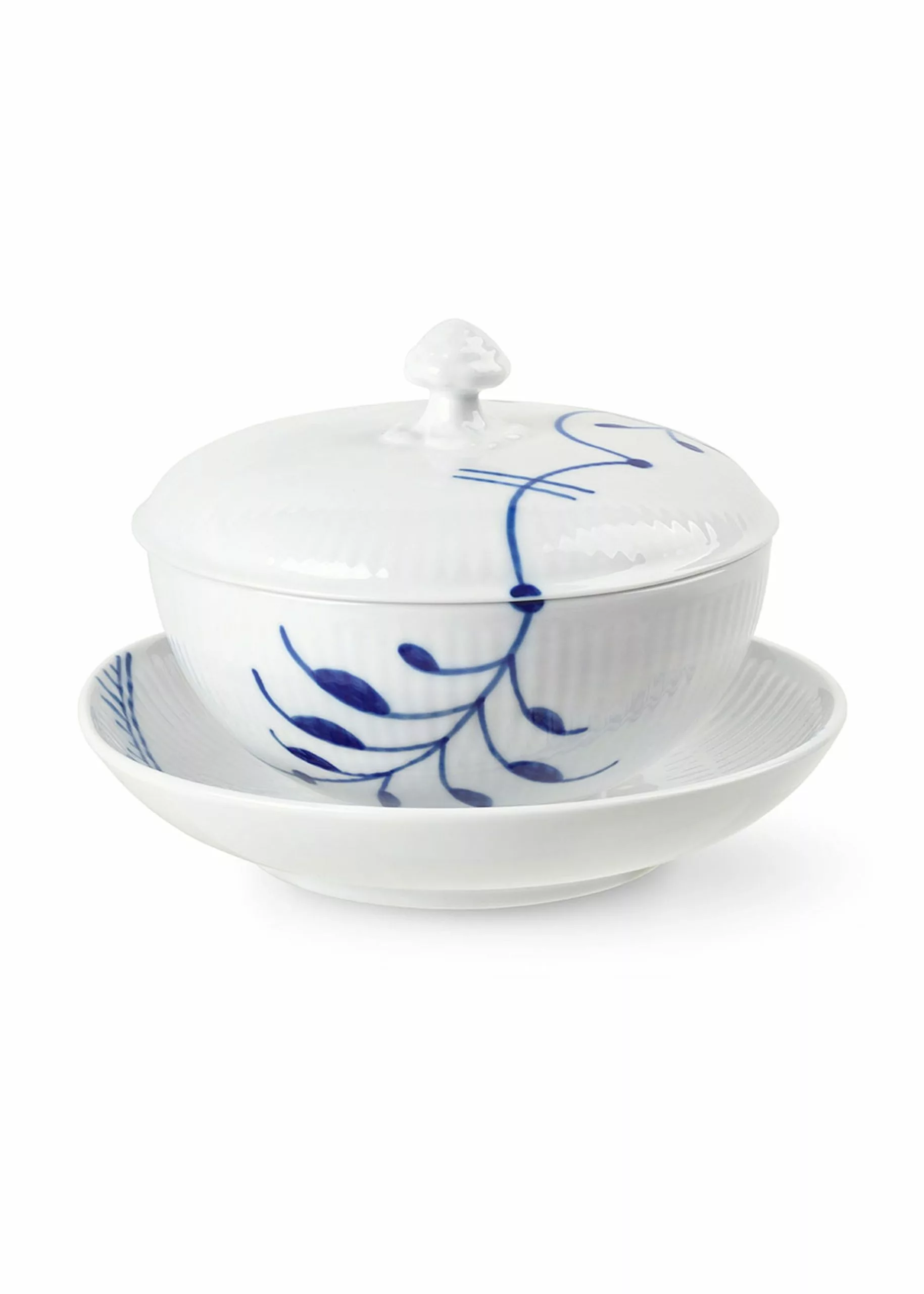 This practical set consisting of the Blue Mega Riflet bowl with lid and saucer is ideal for small dishes. Also use the bowl for a small portion of soup for each guest during dinner. The bowl's hand-painted decorations adorn the set's design and how it blends with the rest of the Mega Rifle range.