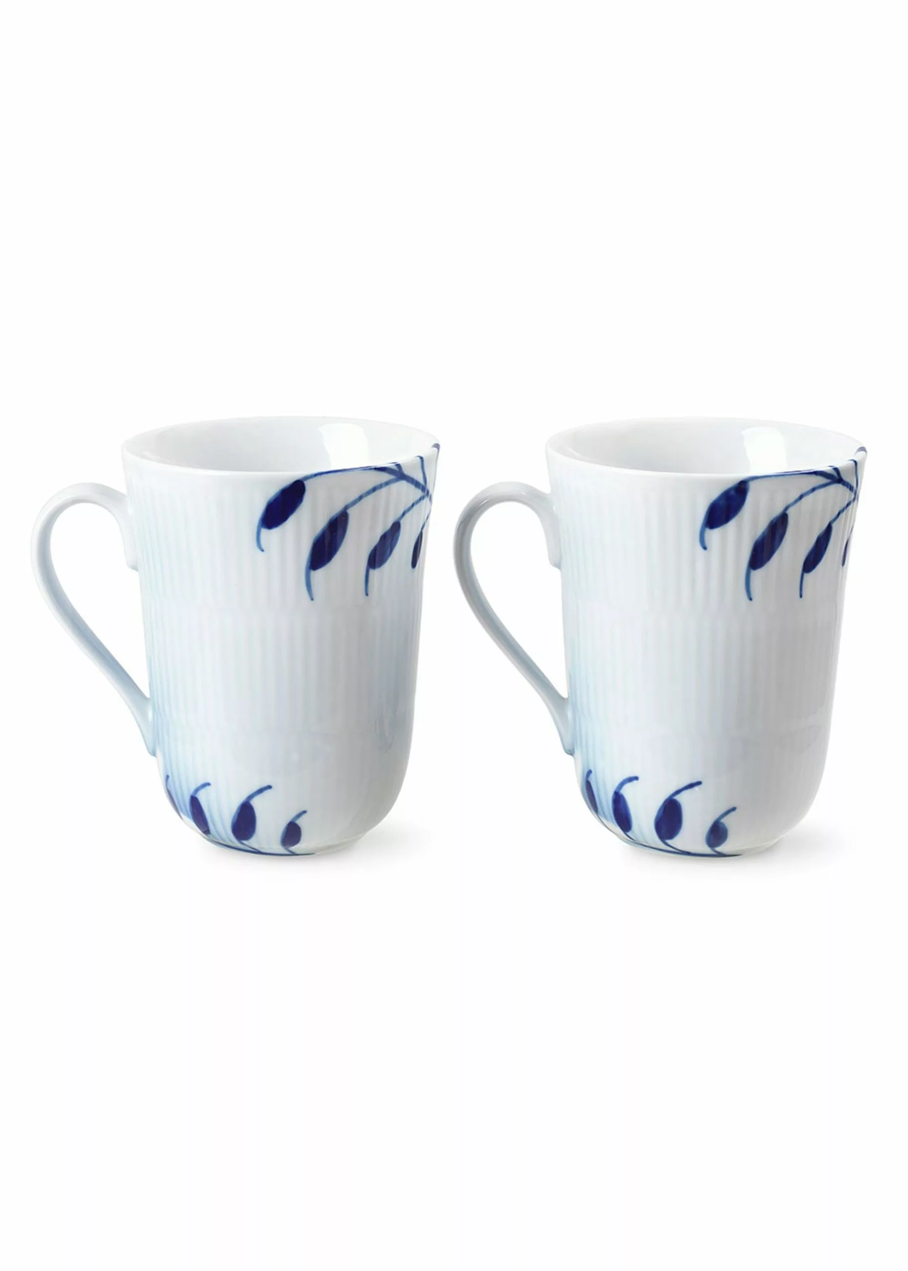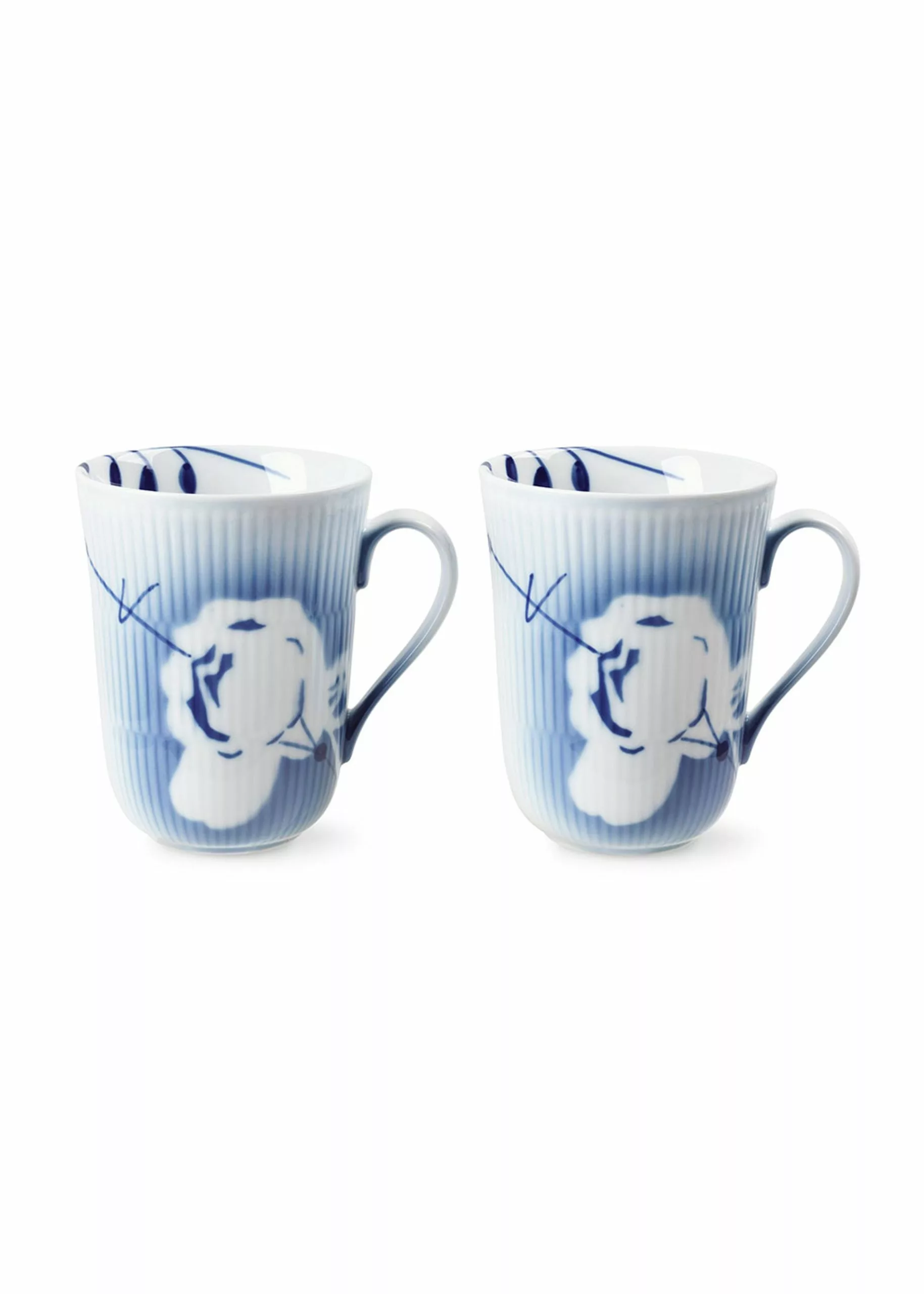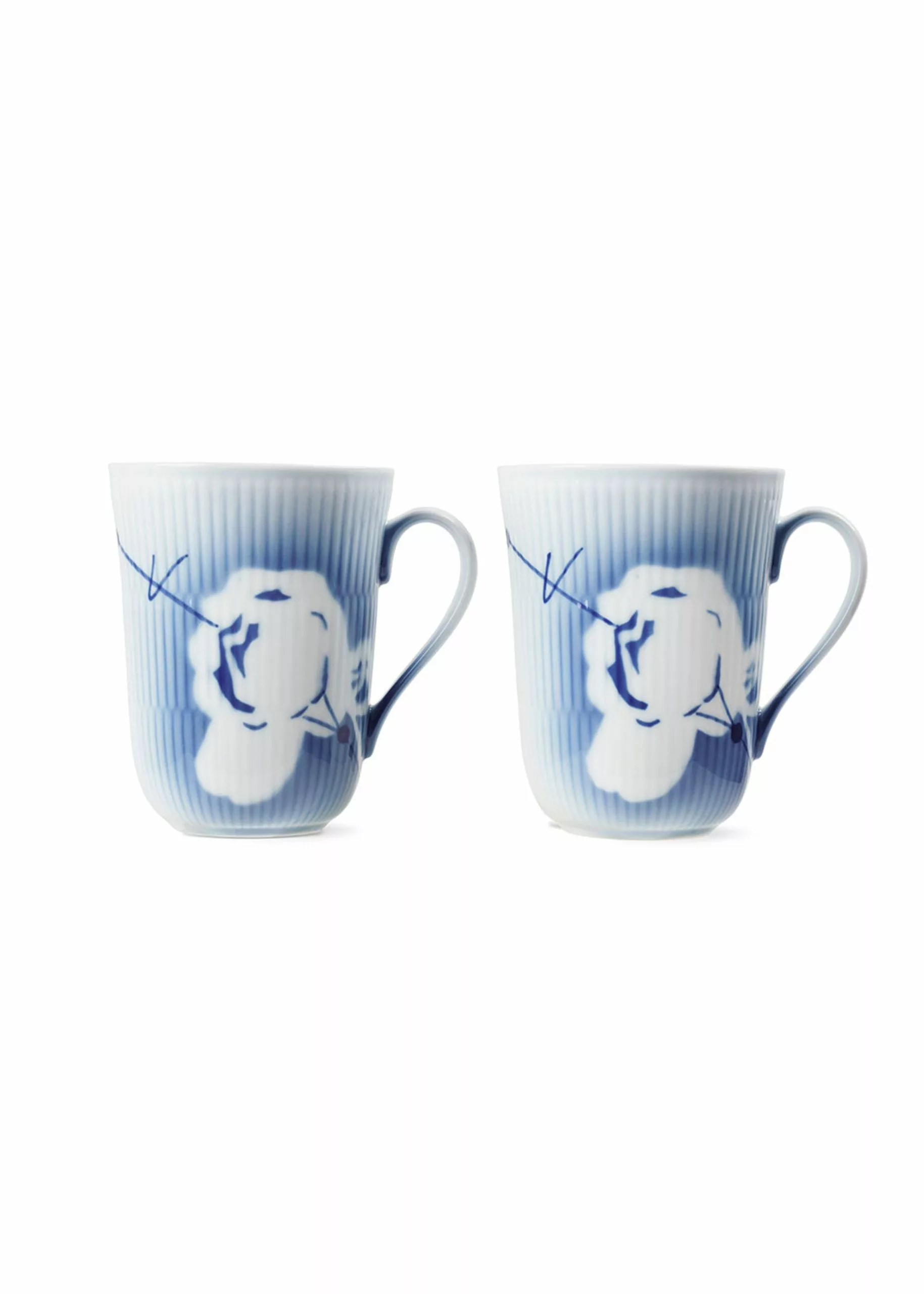 Be reminded of fragrant rose gardens in the English countryside with the Mega Rose mugs from Royal Copenhagen. The mugs are designed in collaboration with Karen Kjældgaard and Mette Hannemann. The cup illustrations are partly hand painted and partly airbrushed. The cup has two sides, with one side adorned with the classic Blue mega fluted pattern, and the other side showing the silhouette of a beautiful rose. The mugs are perfect as coffee or tea mugs for cosy moments.