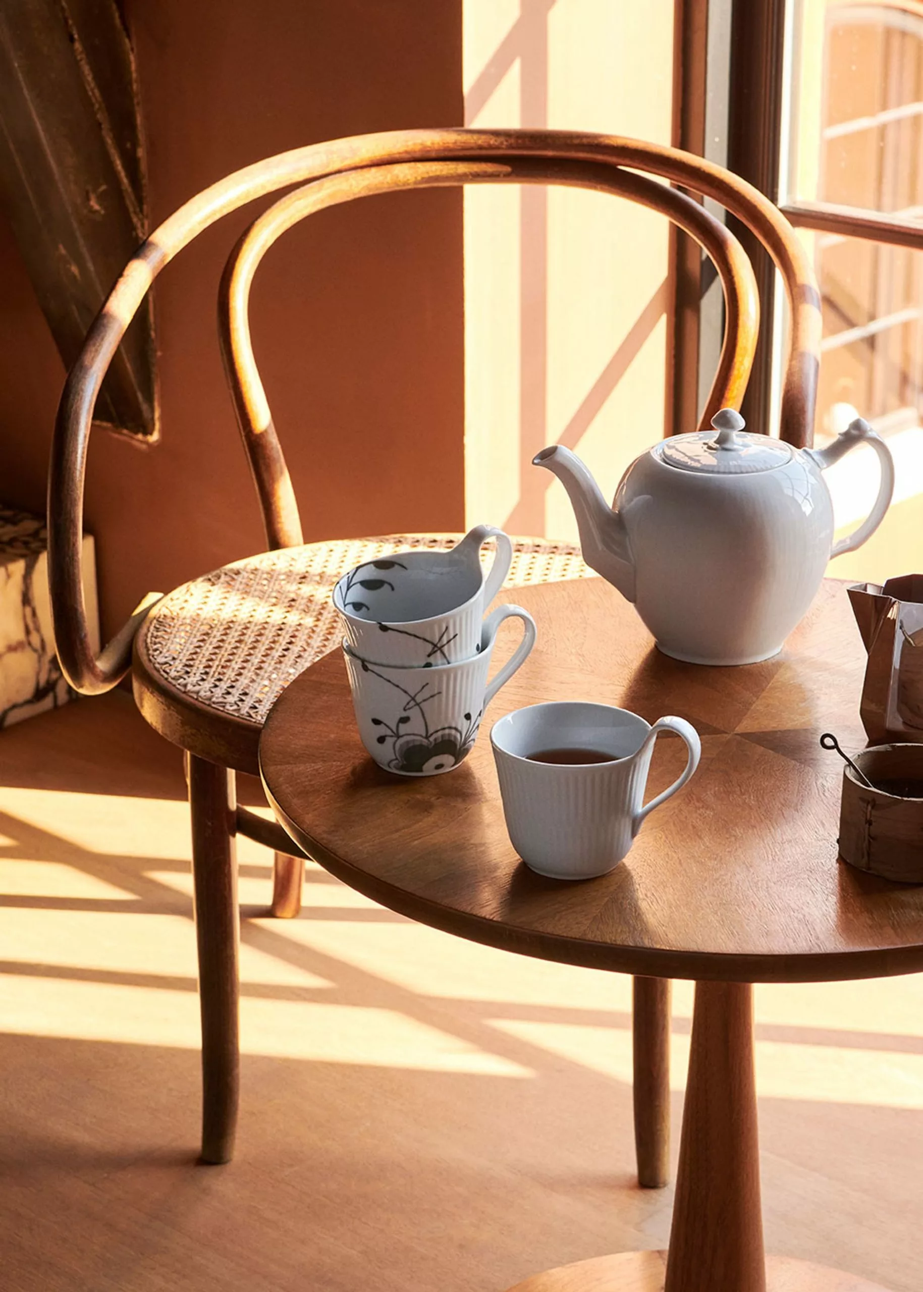 With this elegant Black Mega Riftlet tall mug from Royal Copenhagen you can enjoy your favorite hot beverage. The tall mug is beautifully hand painted. The tall handle of the cup is a true Royal Copenhagen icon.
