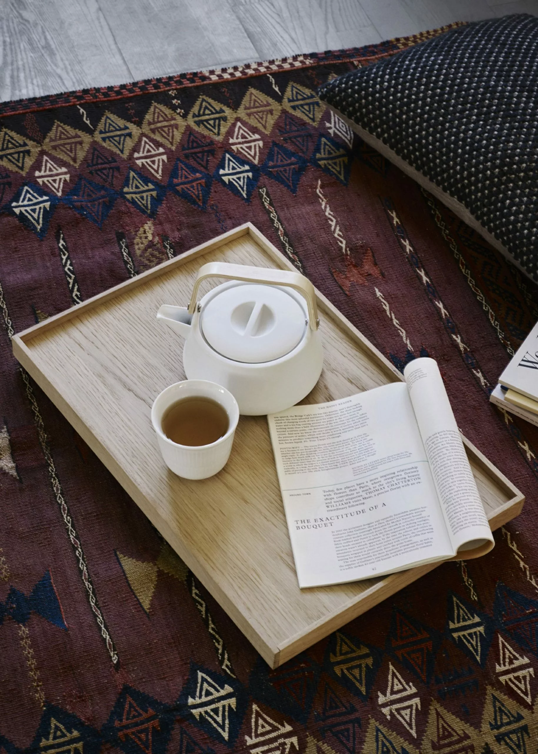 The Nomad table tray, from Skagerak, is a multi-functional oak furniture. The Tray has folding legs in steel, with a silk grey powdercoat. The Nomad table tray also functions as a minor coffee table or as side table for decorations or storage.
