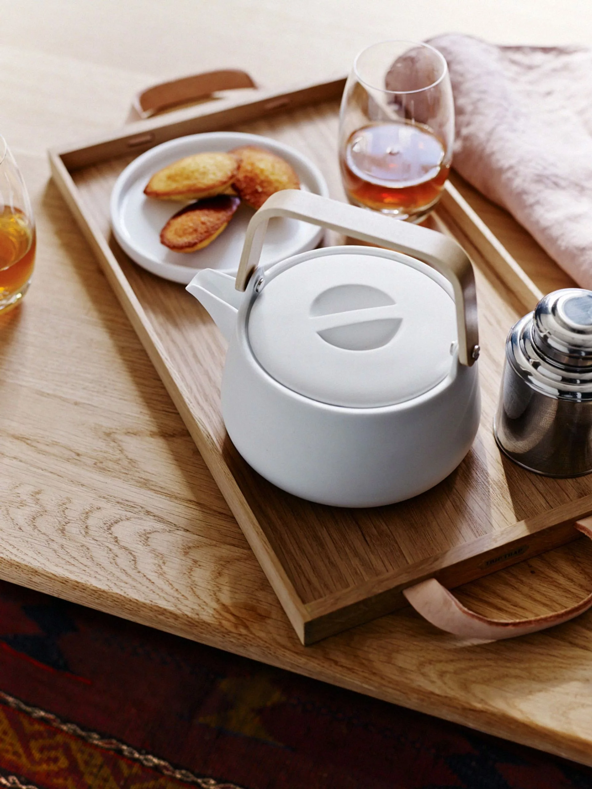 Norr Tray is made in natural materials with a visible and living structure. The simple, rectangular form and the tactile leather grip makes it easy to carry – perfect for servings in bed, on the balcony or around the fireplace. Over the years, the oak and leather will patina beautifully.
