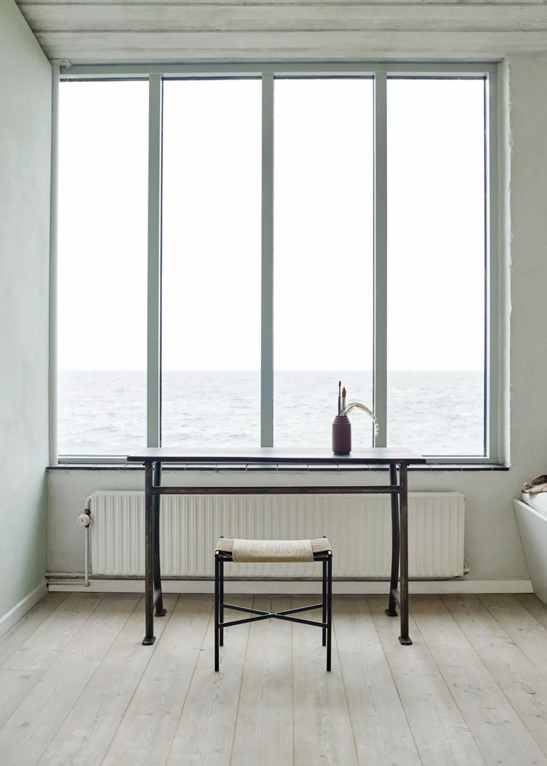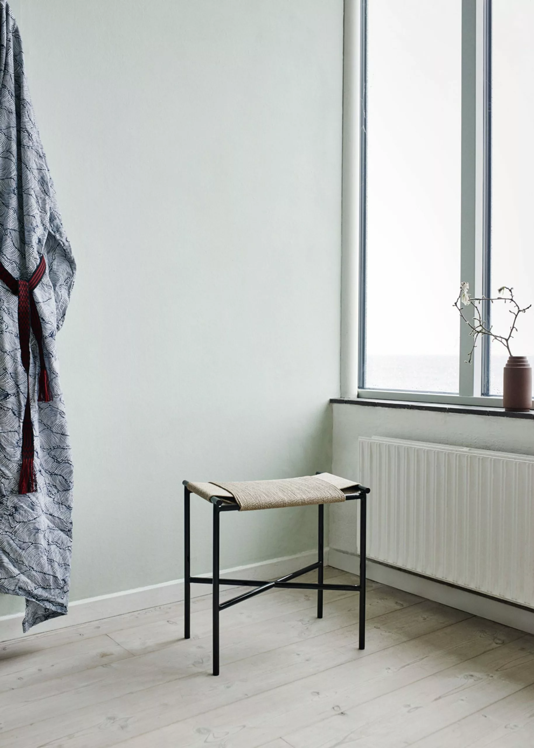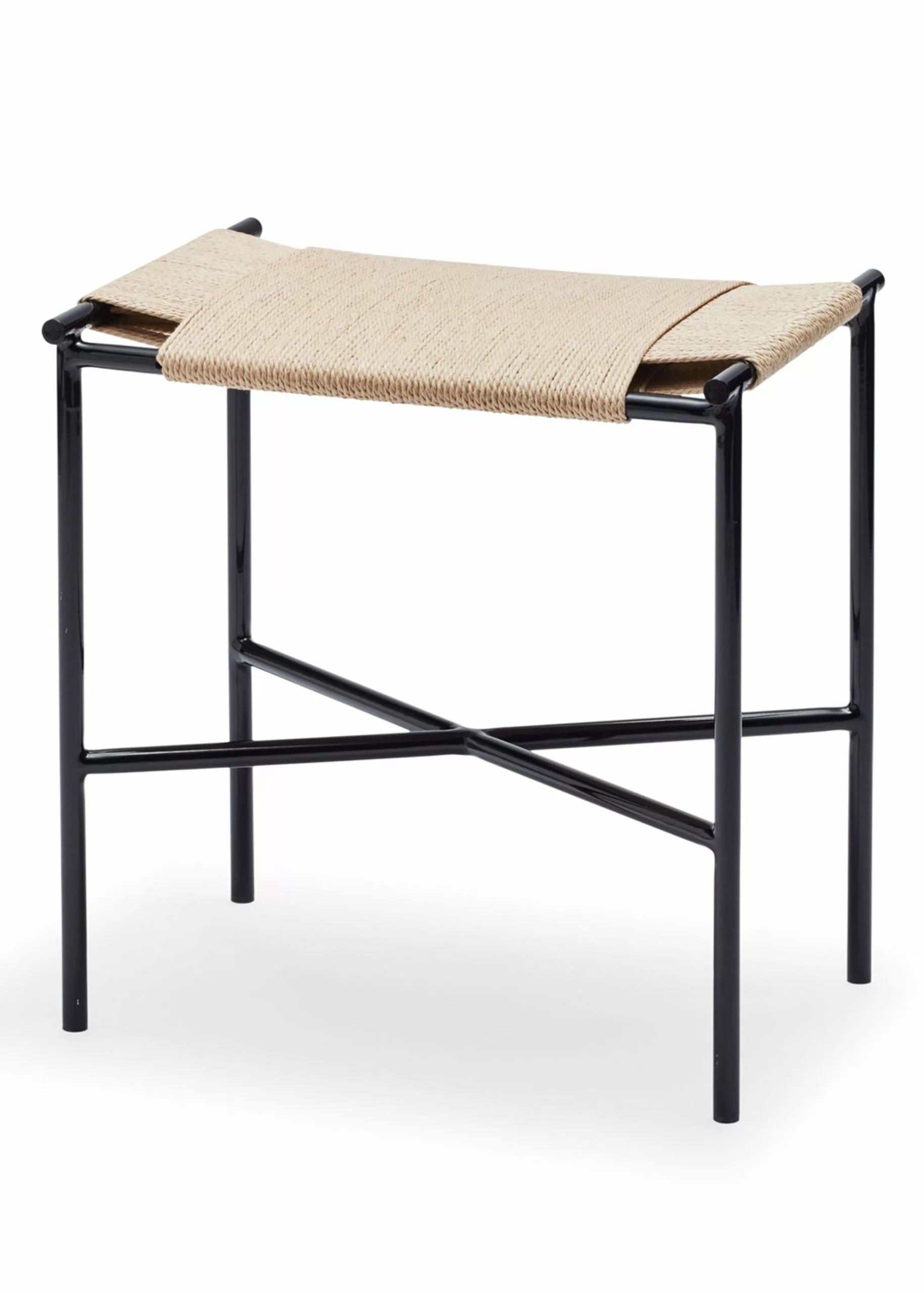 A beautiful simple and elegant Stool. The Vent Stool from Skagerak. It is slim with a elegant black steel frema and has a seat of braided paper cord wich is used by the biggest danish designers. The Vent Stool has an organic look thatis both modern and traditional. ‘Vent’ means ‘wait’ in Danish – and the stool was originally designed to offer people a seat at the Museums, while observing and enjoying the artworks.