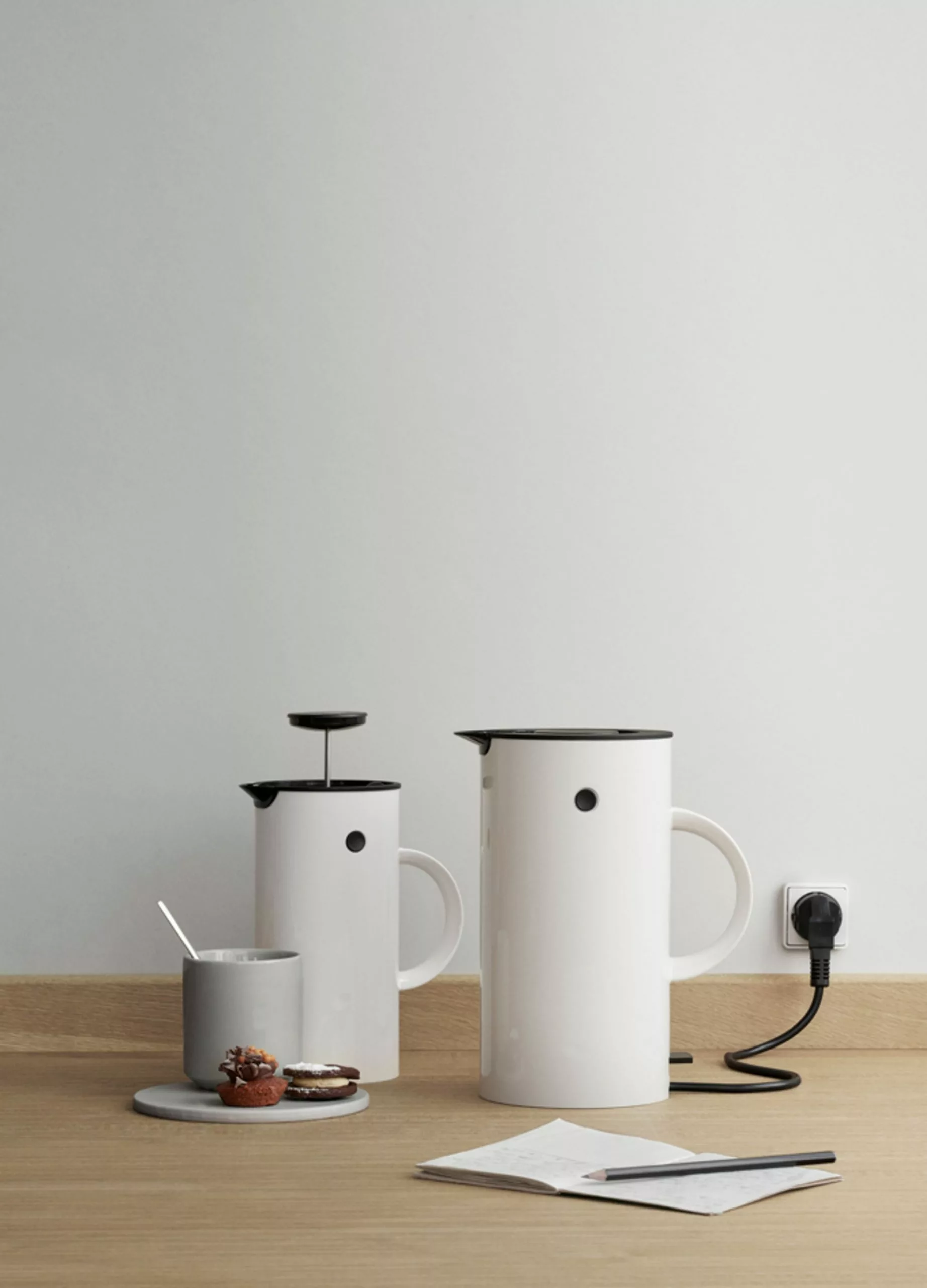 The EM77 Electric Kettle is a beautiful kettle with a classic and stylish design that is available in 4 different colours, each of which will dress up a kitchen in its own way. The kettle is designed by Erik Magnussen for Stelton and is therefore part of Erik Magnussen's design classic which is known all over the world. Erik Magnussen is a Danish designer trained as a ceramist at the School of Arts and Crafts in 1960 where he received a silver medal. The EM77 series has been in kitchens for about 40 years. But the electric kettle is a now a new member to the family of style and function which is put together for the EM77 electric kettle.