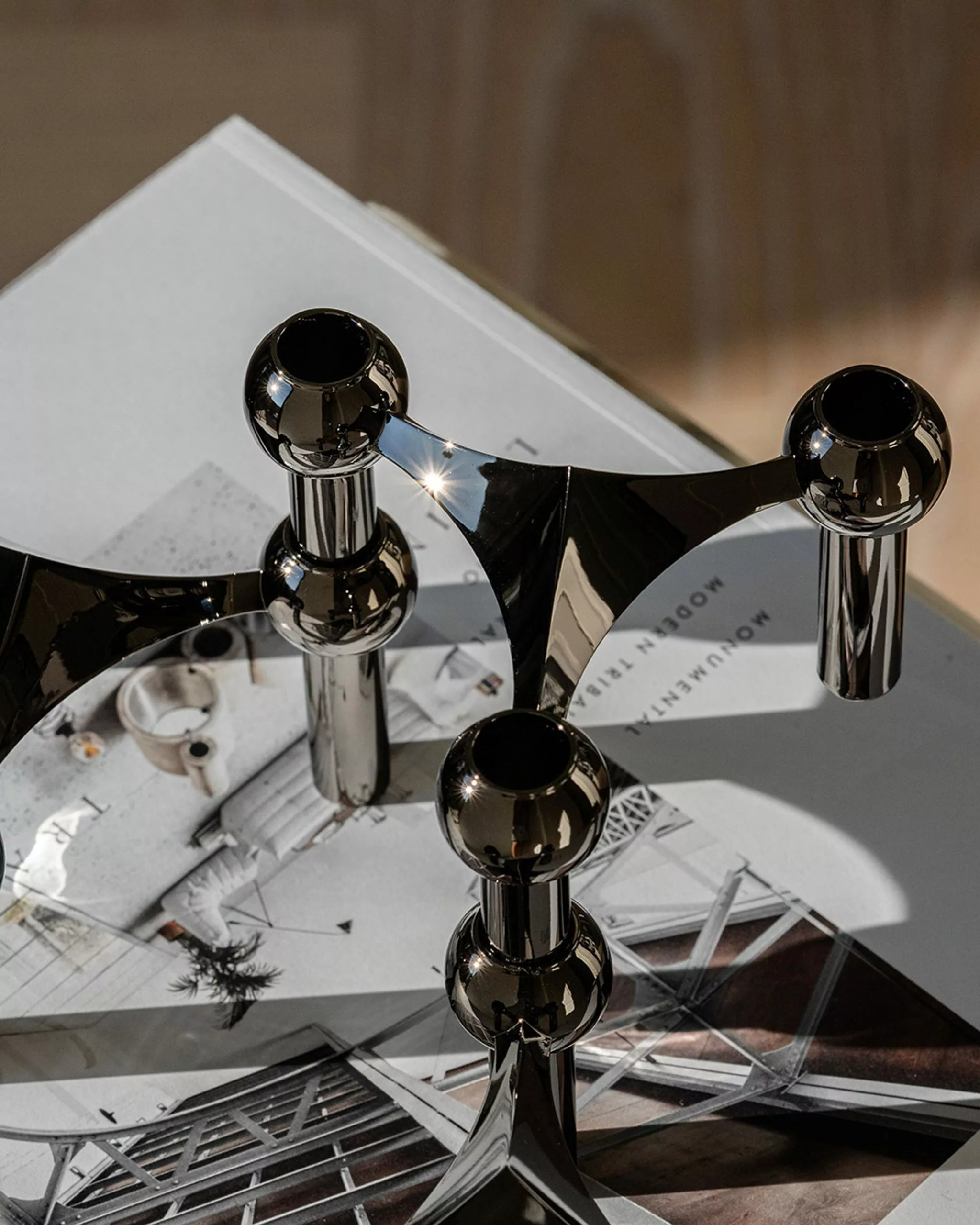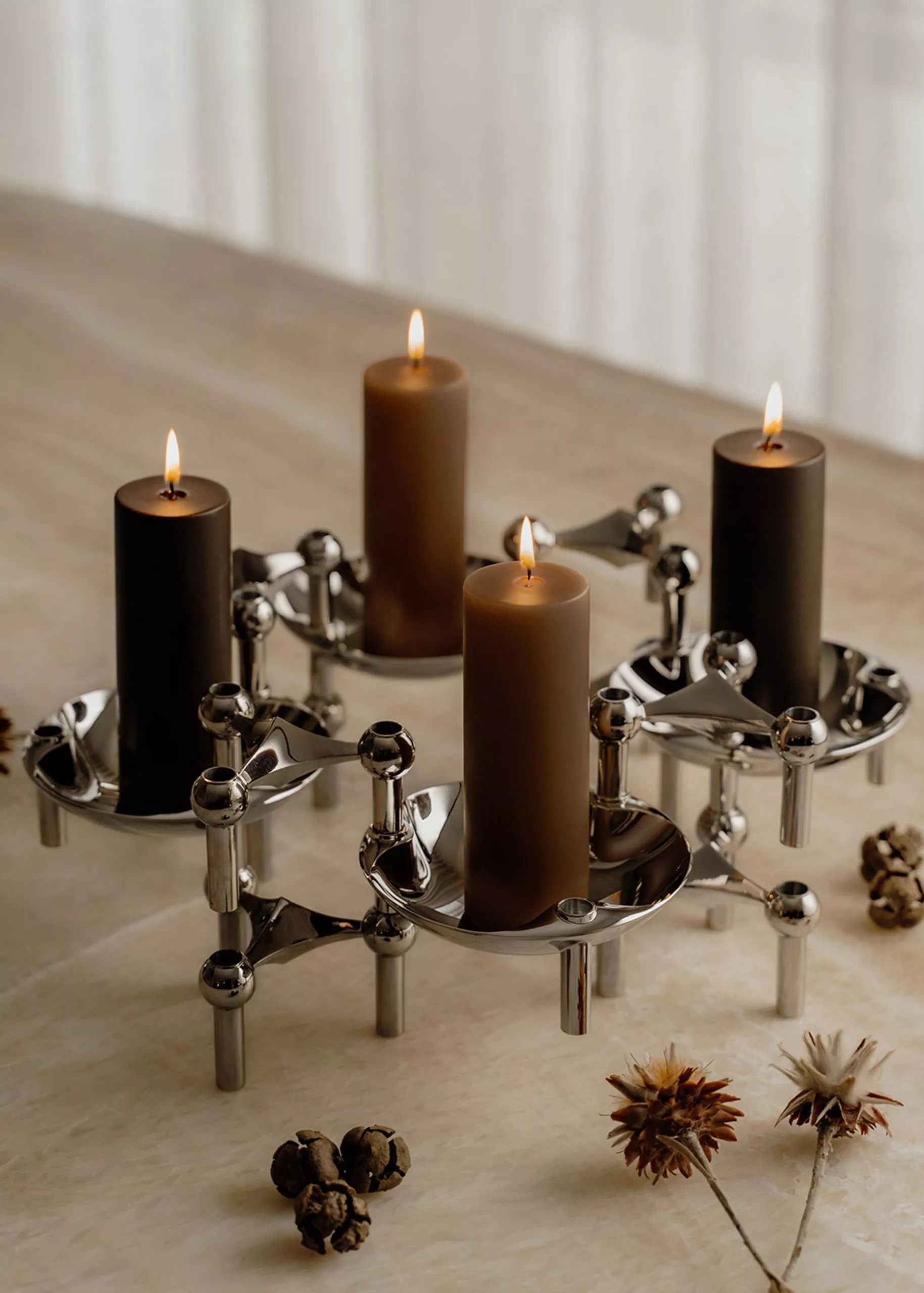 This is the beautiful and iconic Nagel Candle Holder. It is design back in 1965 by the German architect Werner Stoff for Hans Nagel. Werner designed this beautiful and modular candleholder. Today it is a design icon, and produces by JustRight under the brand name STOFF.