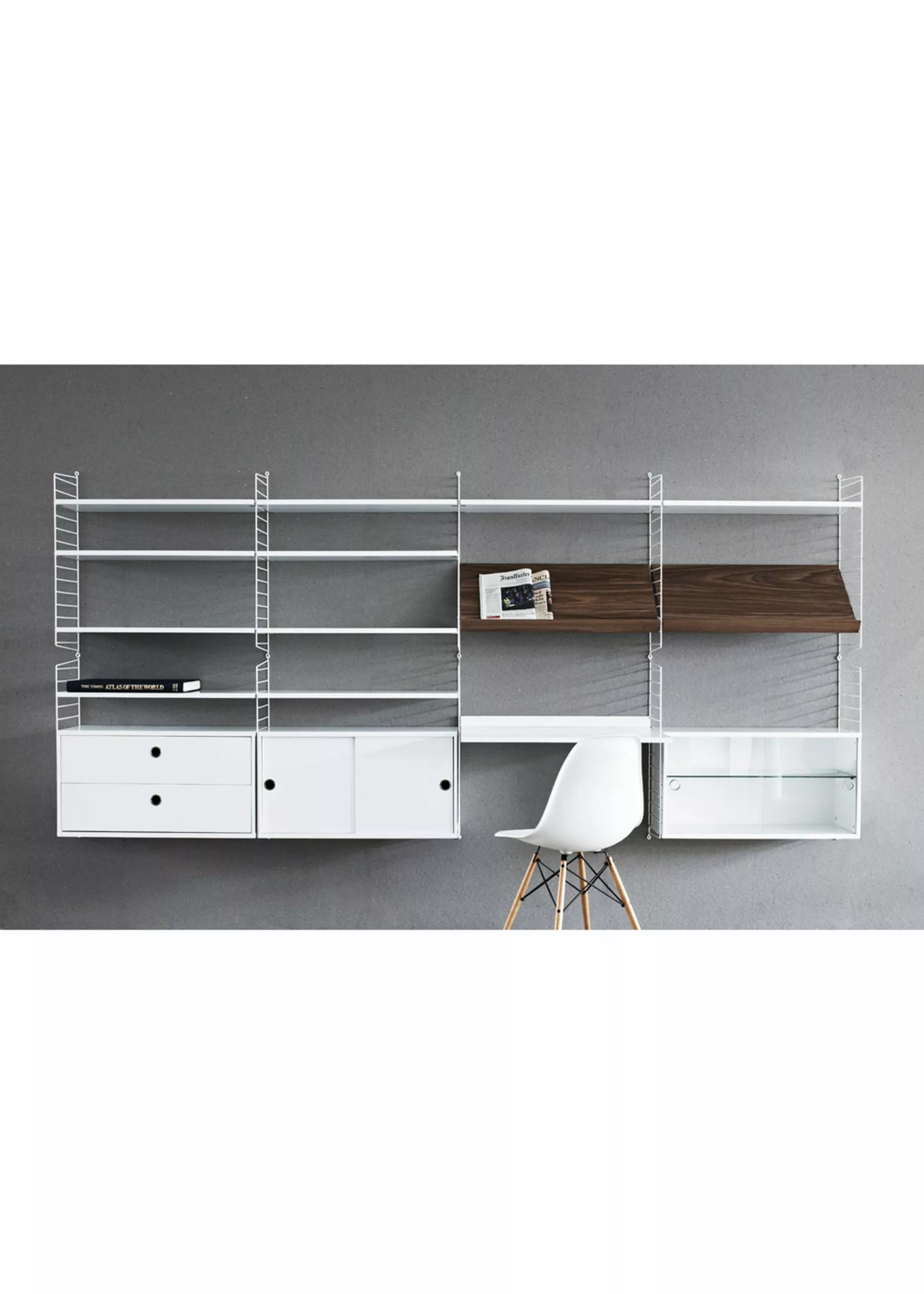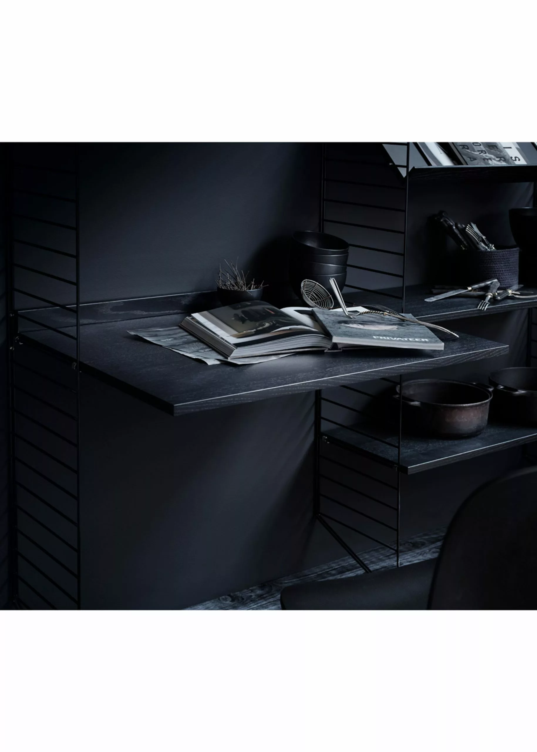 Work Desk from String is part of the String shelving system. This shelving system focuses on functionality, as the system offers endless possibilities in storage and creativity. Work Desk creates an extra space to organize office work. The desk is simply used together with String Floor Panels to create the perfect office space.