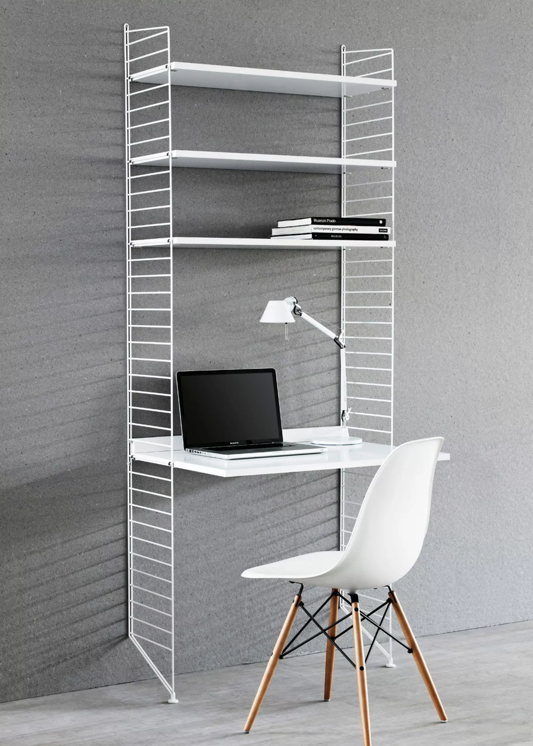 Work Desk from String is part of the String shelving system. This shelving system focuses on functionality, as the system offers endless possibilities in storage and creativity. Work Desk creates an extra space to organize office work. The desk is simply used together with String Floor Panels to create the perfect office space.