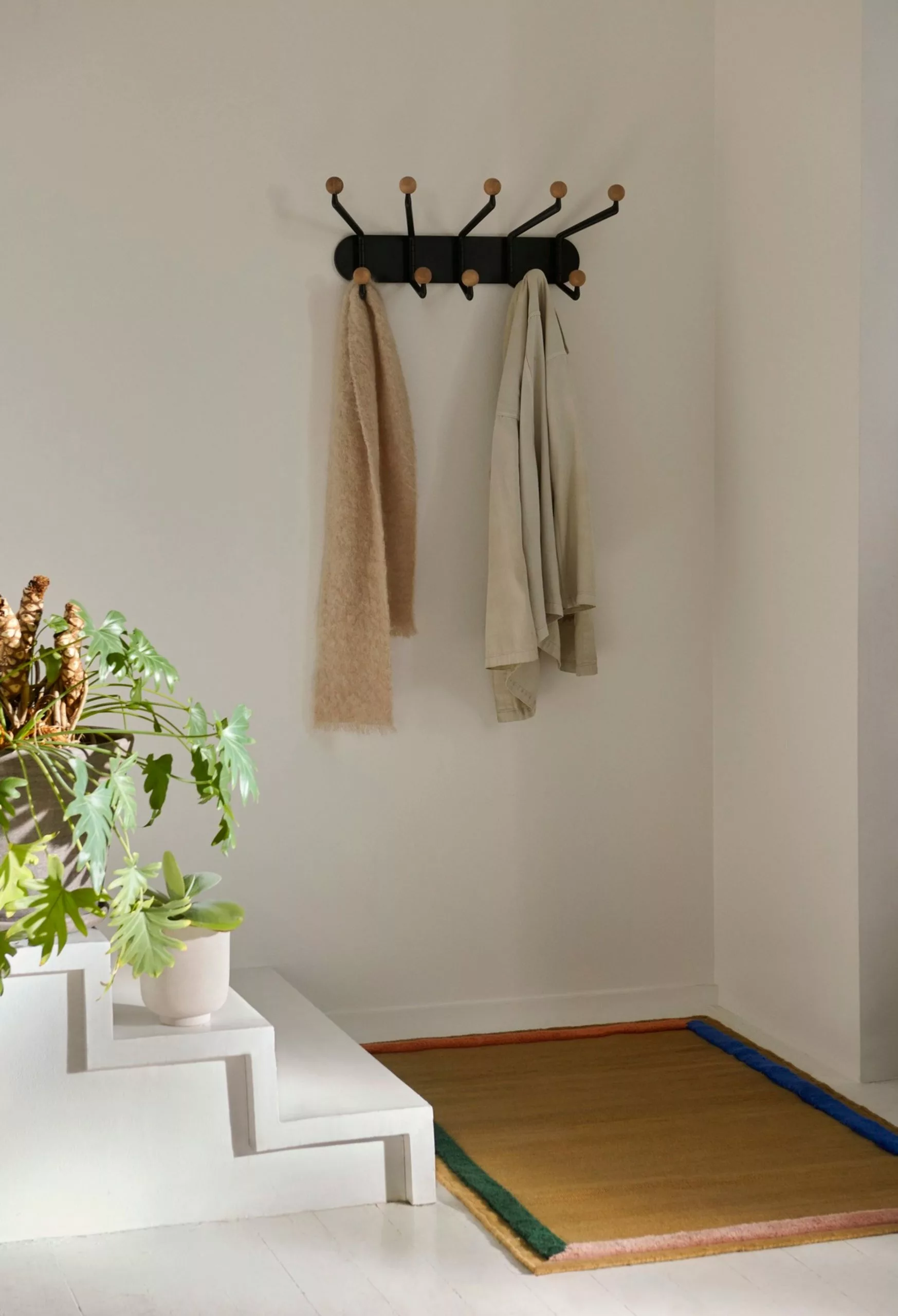 The flexible and practical Capture SC76 coat rack is designed by Space Copenhagen. The coat rack is made of oak and aluminium. The hooks can be rotated, providing a variety of solutions for the home. Use the coat rack in the entrance hall for coats and bags, the bathroom or the kitchen to hang up towels.