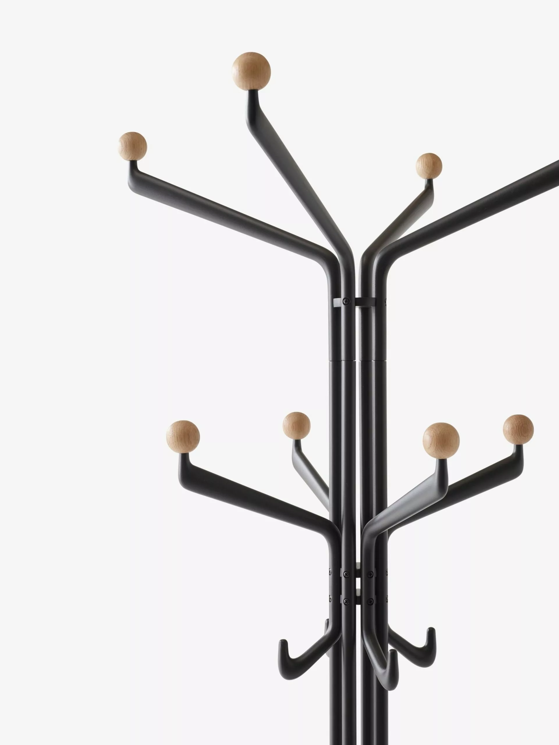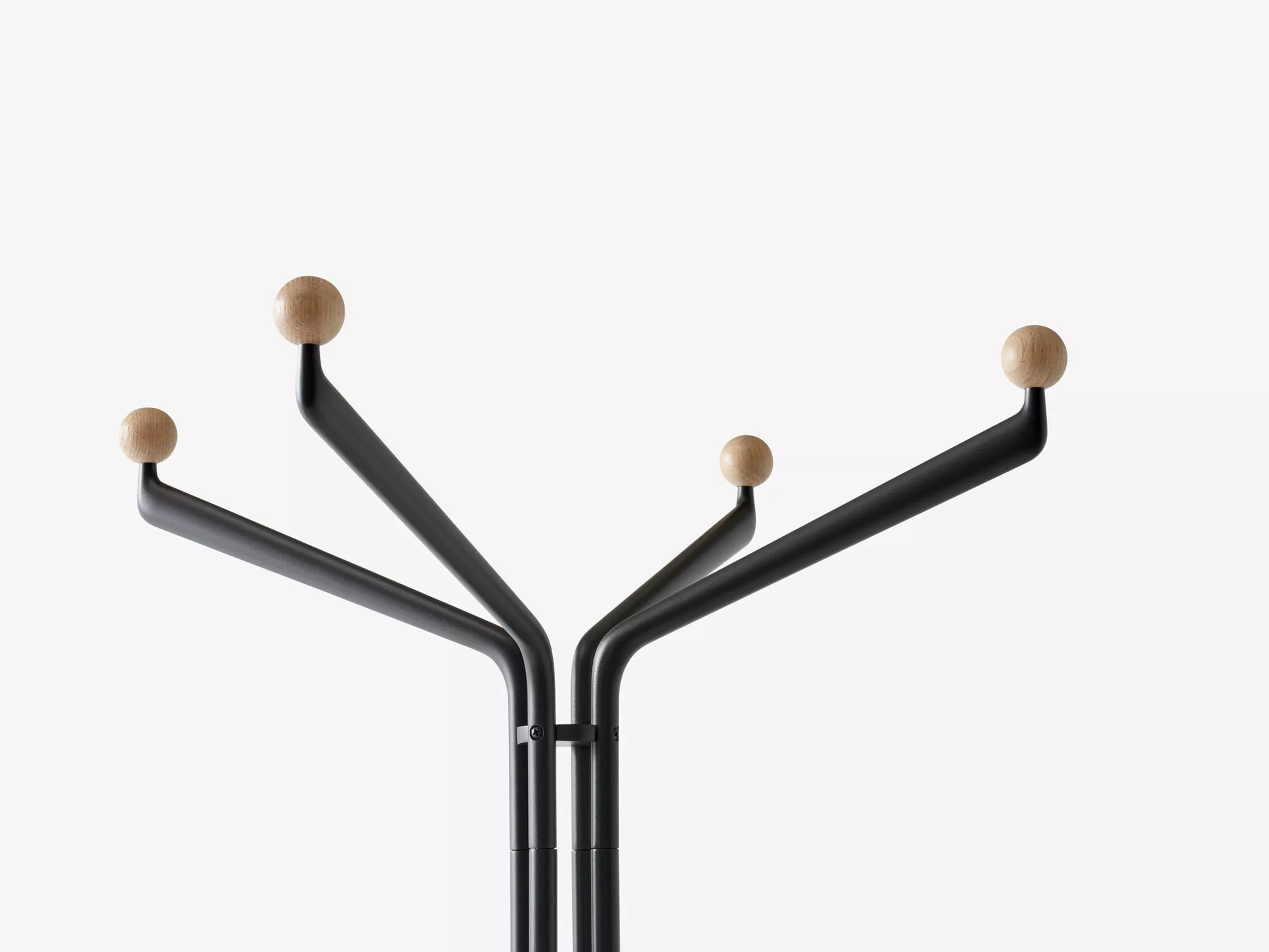 The flexible and practical Capture SC77 pedestal table is designed by Space Copenhagen. It is made of oak and aluminium. The coat rack offers a sculptural approach to a traditional piece of furniture and is perfect for an entrance hall.