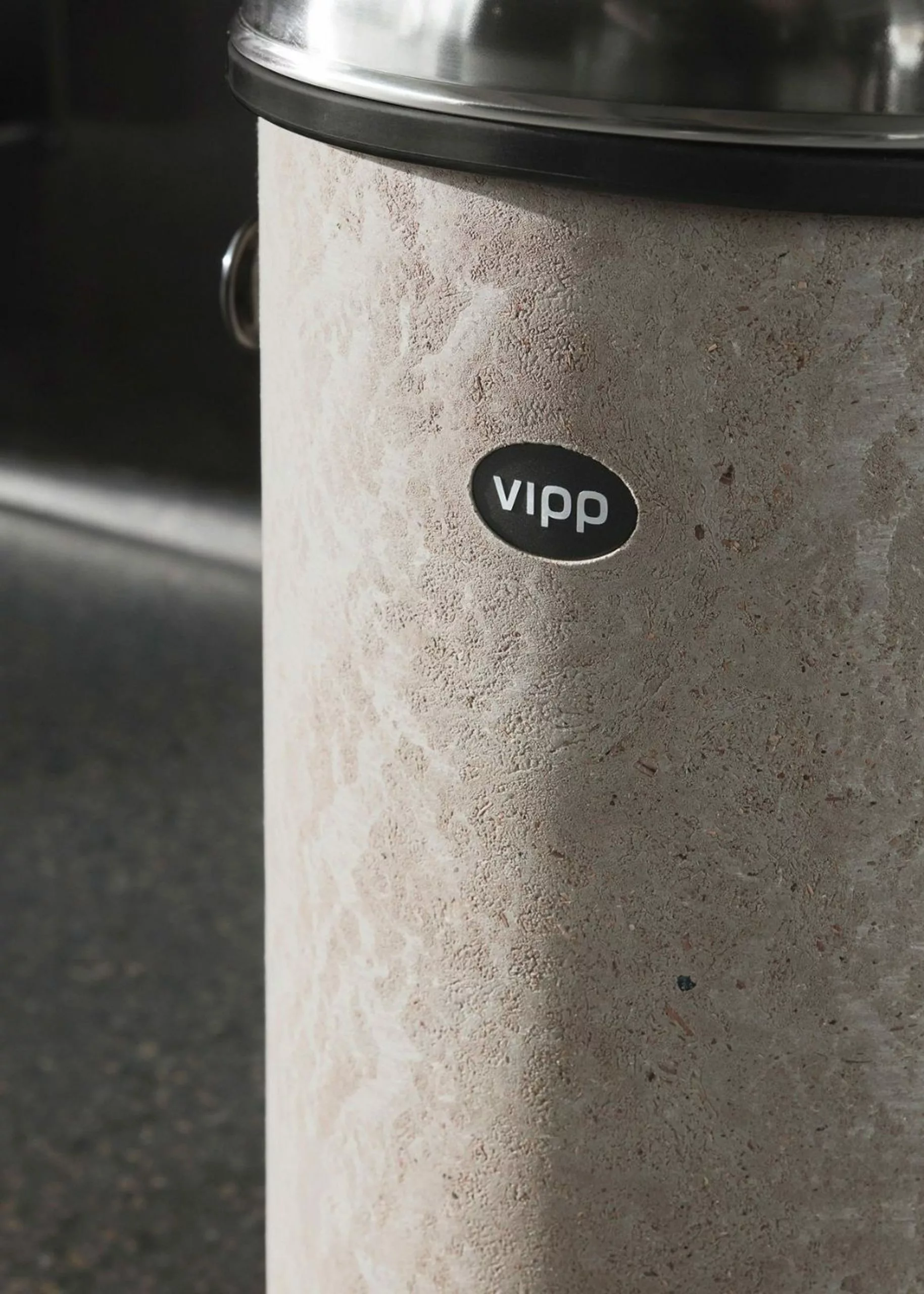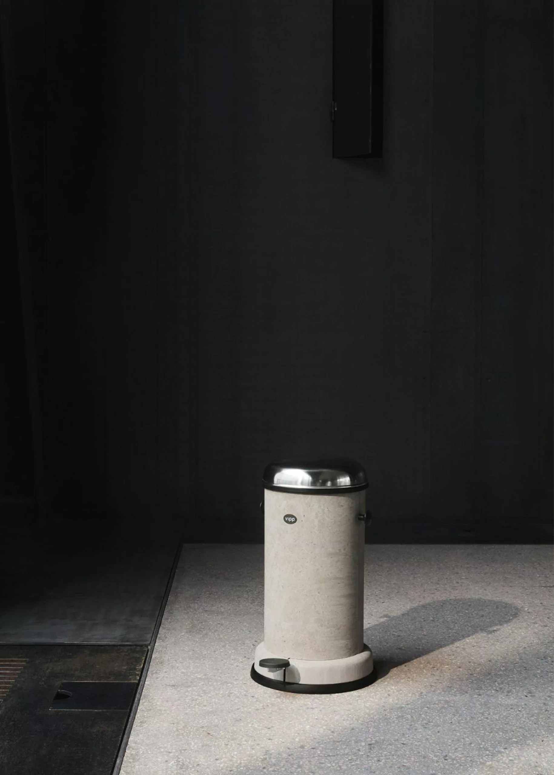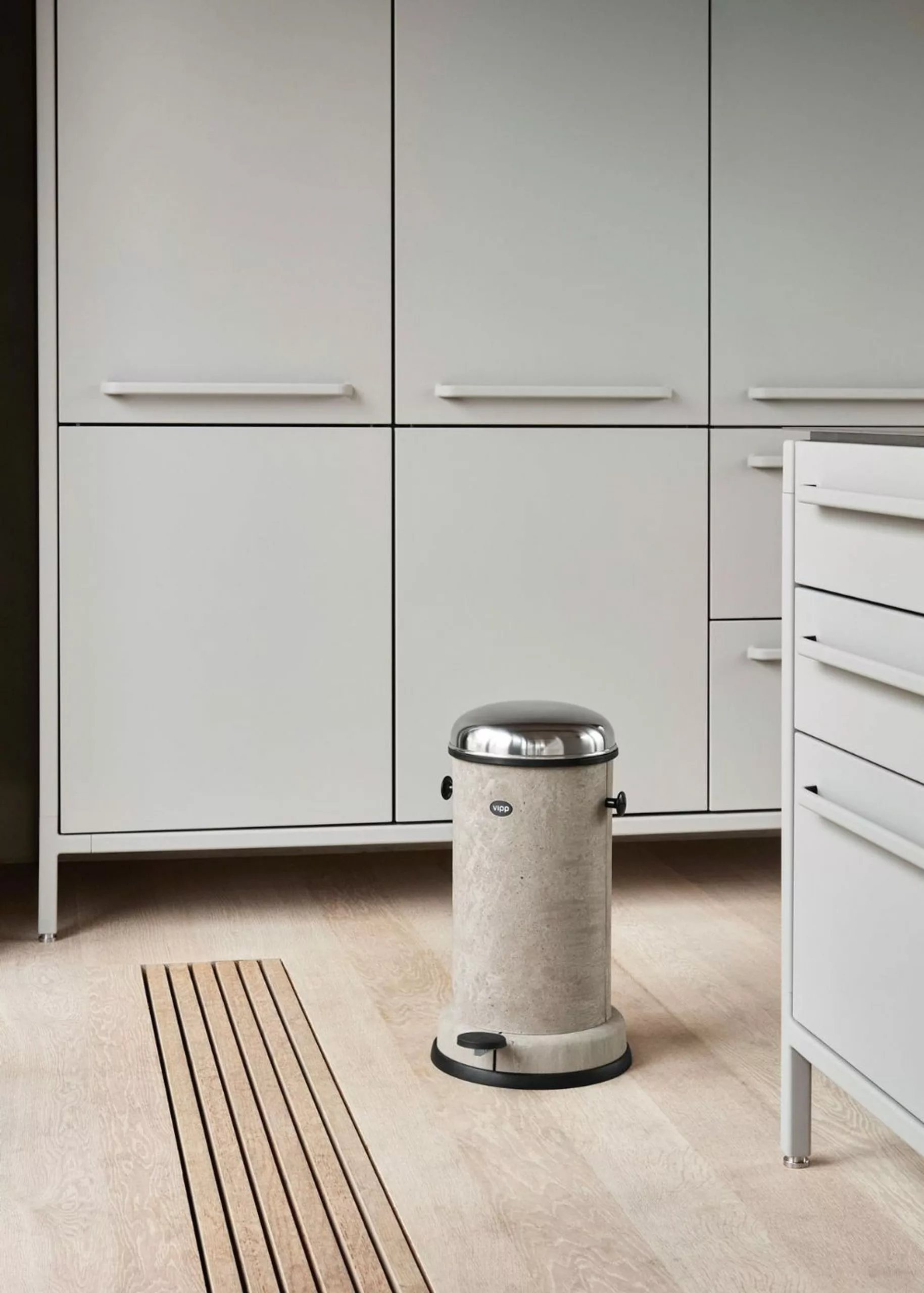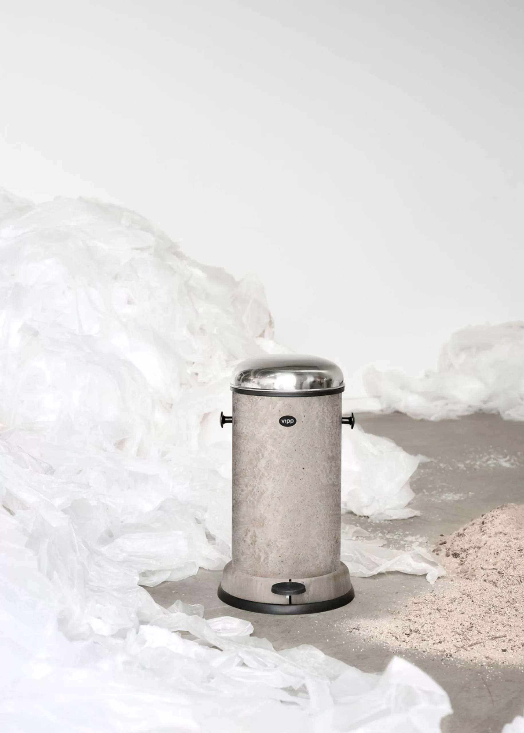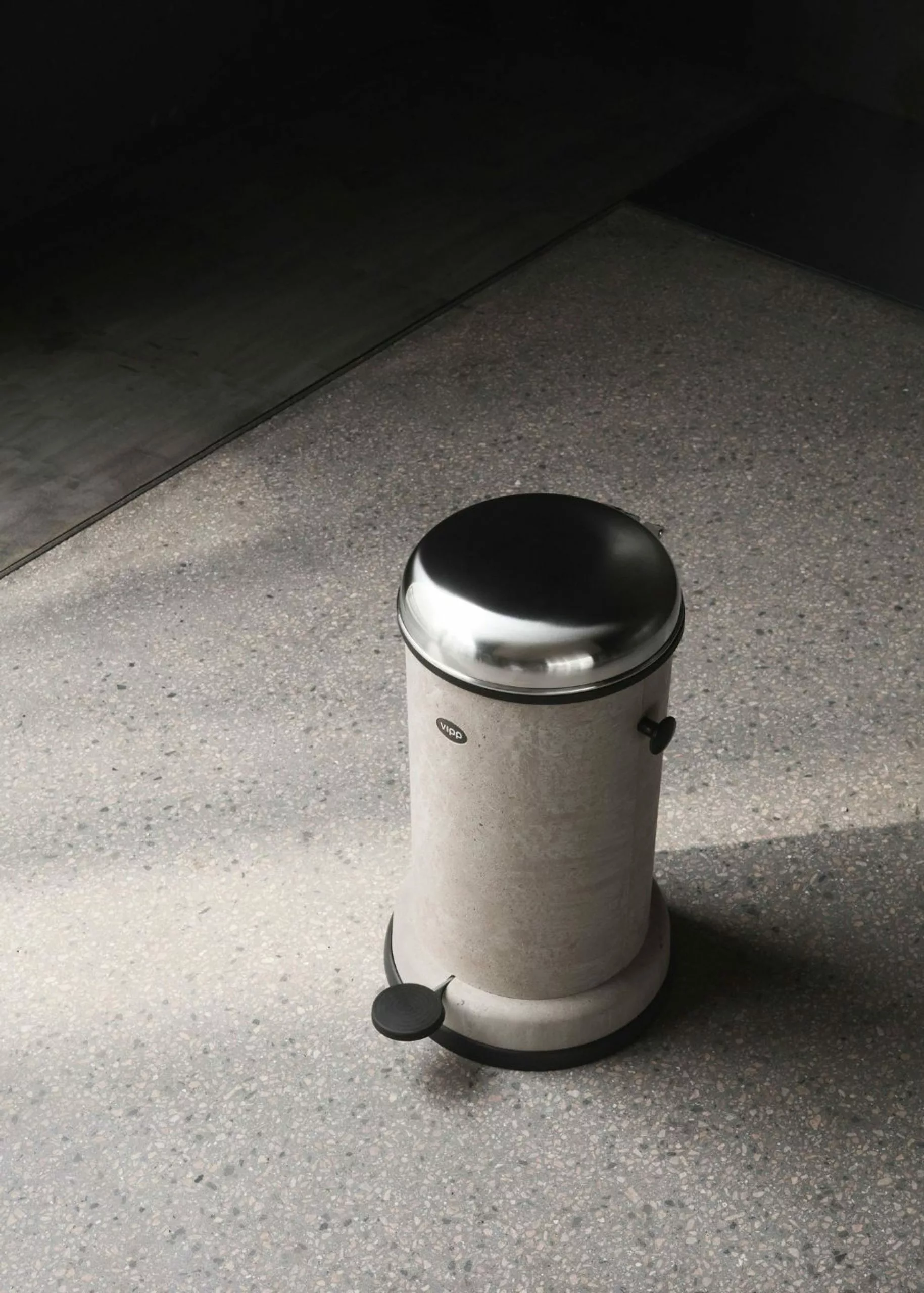 Highly identifiable but made from a revised material composition of leftovers, 'Rubbish' is Vipp's new version of its 1939 pedal bin, a design classic now available in 75% recycled material.