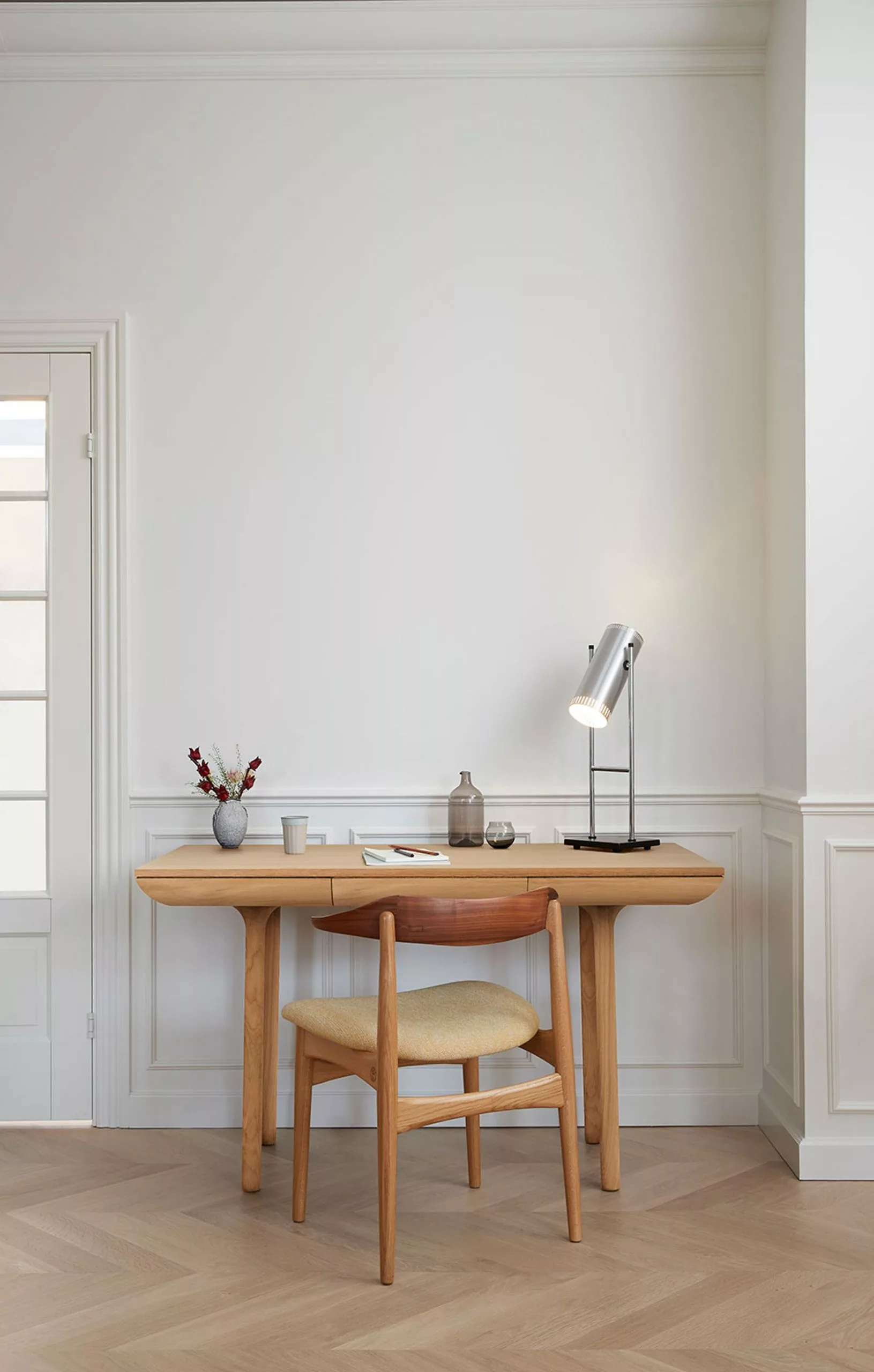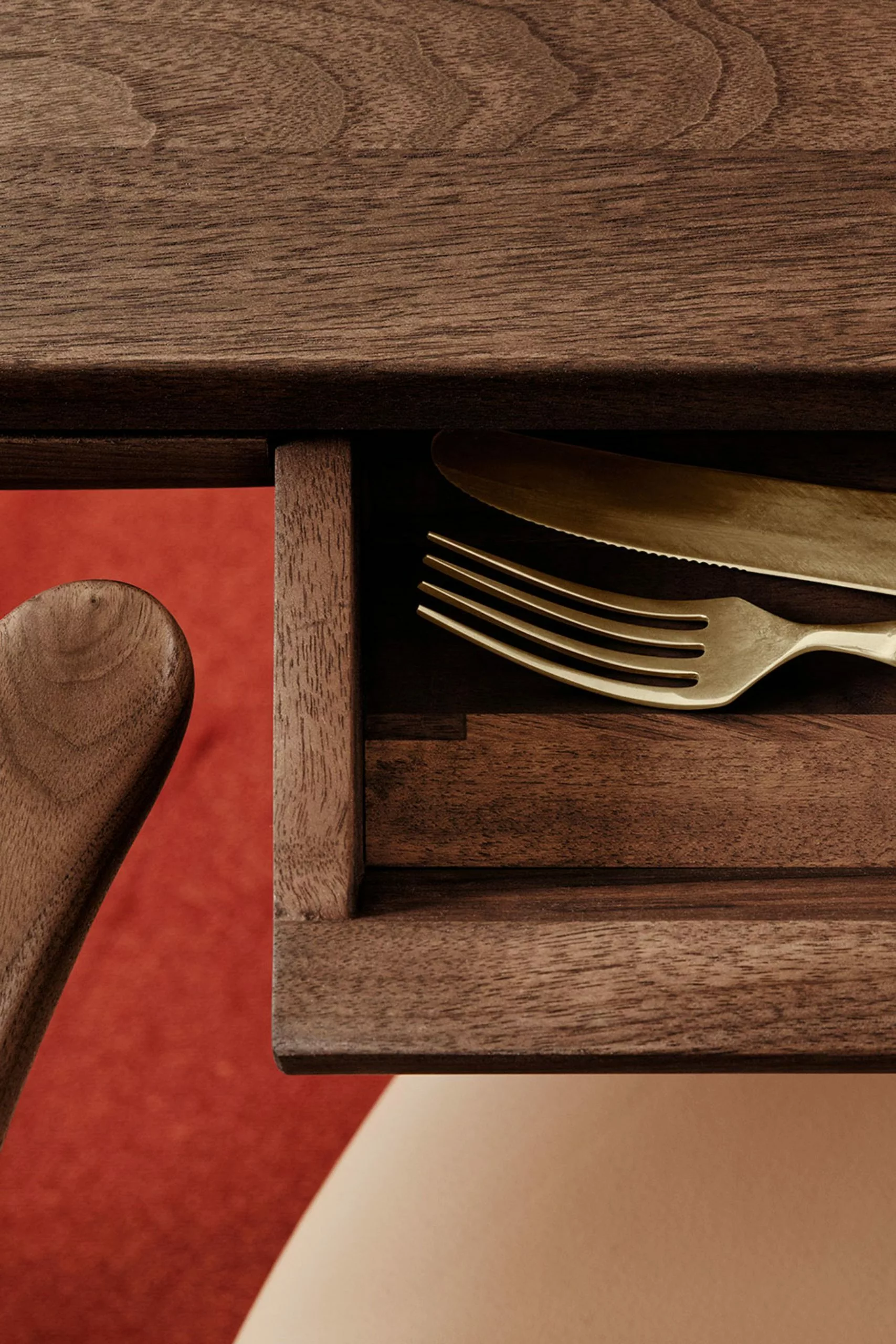 The 'Rúna' table, designed by Danish Isabel Ahm, is the perfect example of timeless and classic design adapted to the modern home. With its calm soft lines executed in dark wood treatments, the table achieves a rich exclusive expression with a retro-modern design. Ideal in the office or dining room, the furniture creates the space around it that opens up for concentration and conversation, while also having an extra functional drawer for everyday storage.