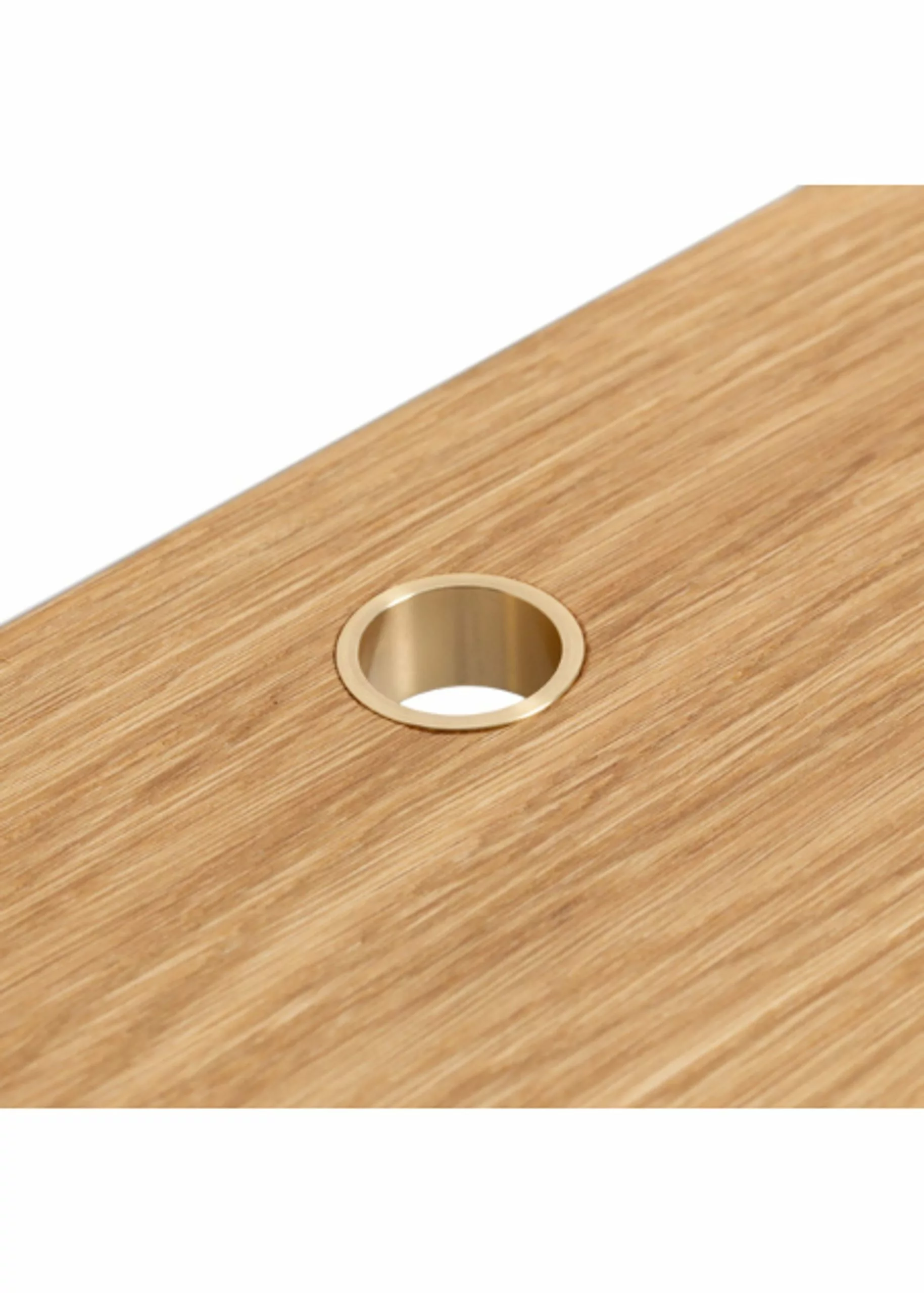 Beautiful and special desk it is perfect to use as a desk. The desk can be folded upwards or downwards, depending on your needs and the space available. The desk is made of beautiful FSC certified oak with some beautiful brass details that together create a truly unique desk. What makes this desk so special is the way it can be used. By hanging on a wall it gives a lighter feel to the room and provides better space. Find a smart chair and put together your new favourite office. FSC certified oak which this beautiful desk of made of is a Scandinavian eco-friendly material.
