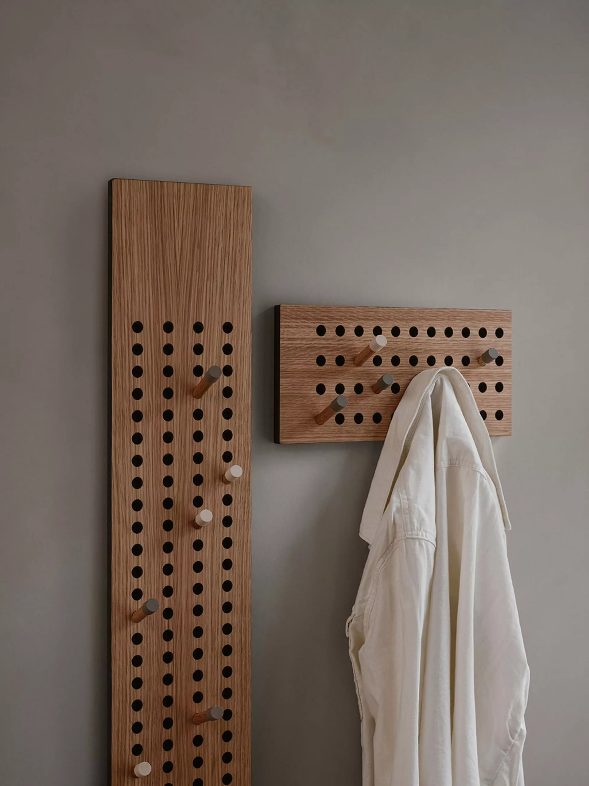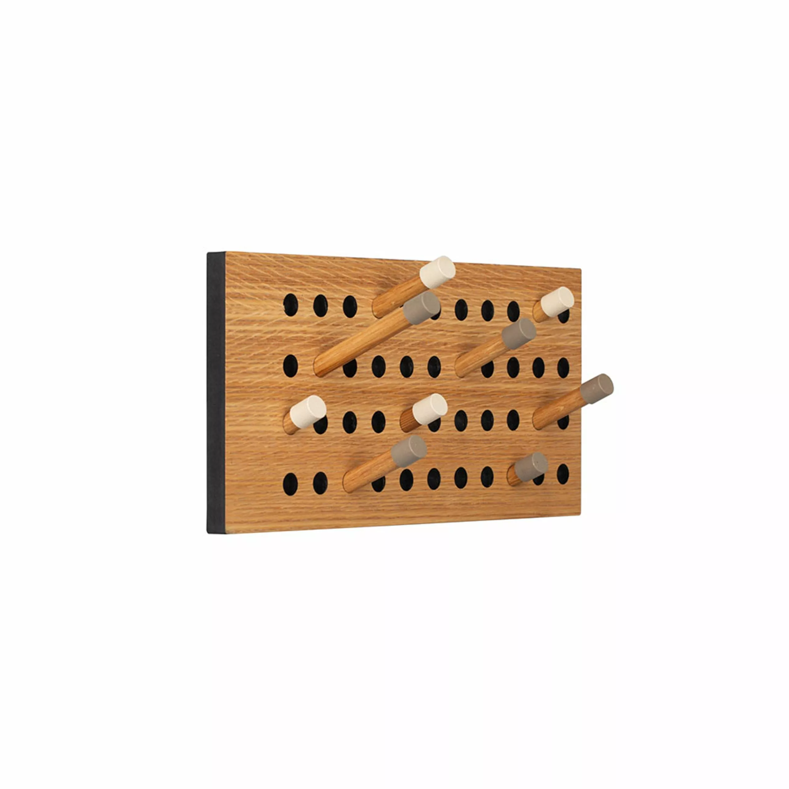 The fine ECO Dots are made by We Do Wood for the Scoreboard collection. The dots are made of recycled plastic and Nordic pine, which are biodegradable materials. Scoreboard ECO Dots are plastic caps for the Scoreboard coat rack. The five different colours are therefore perfect for the wooden hooks if you want to add a personal touch.