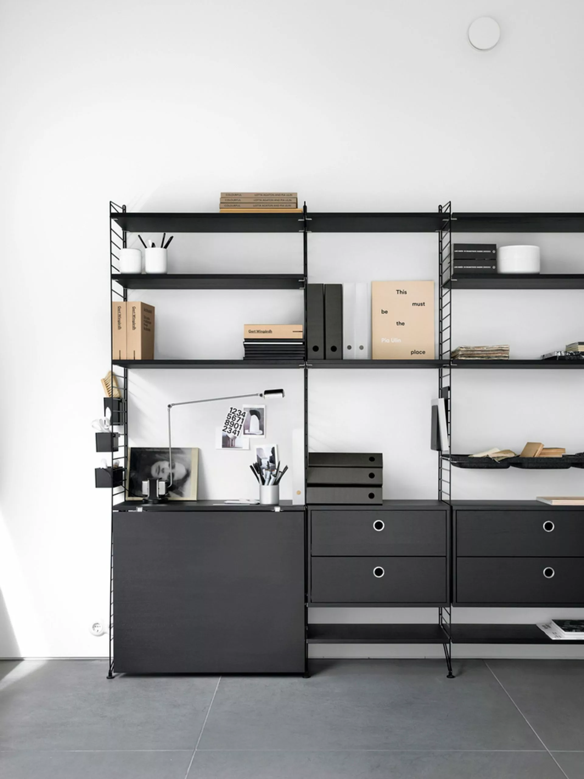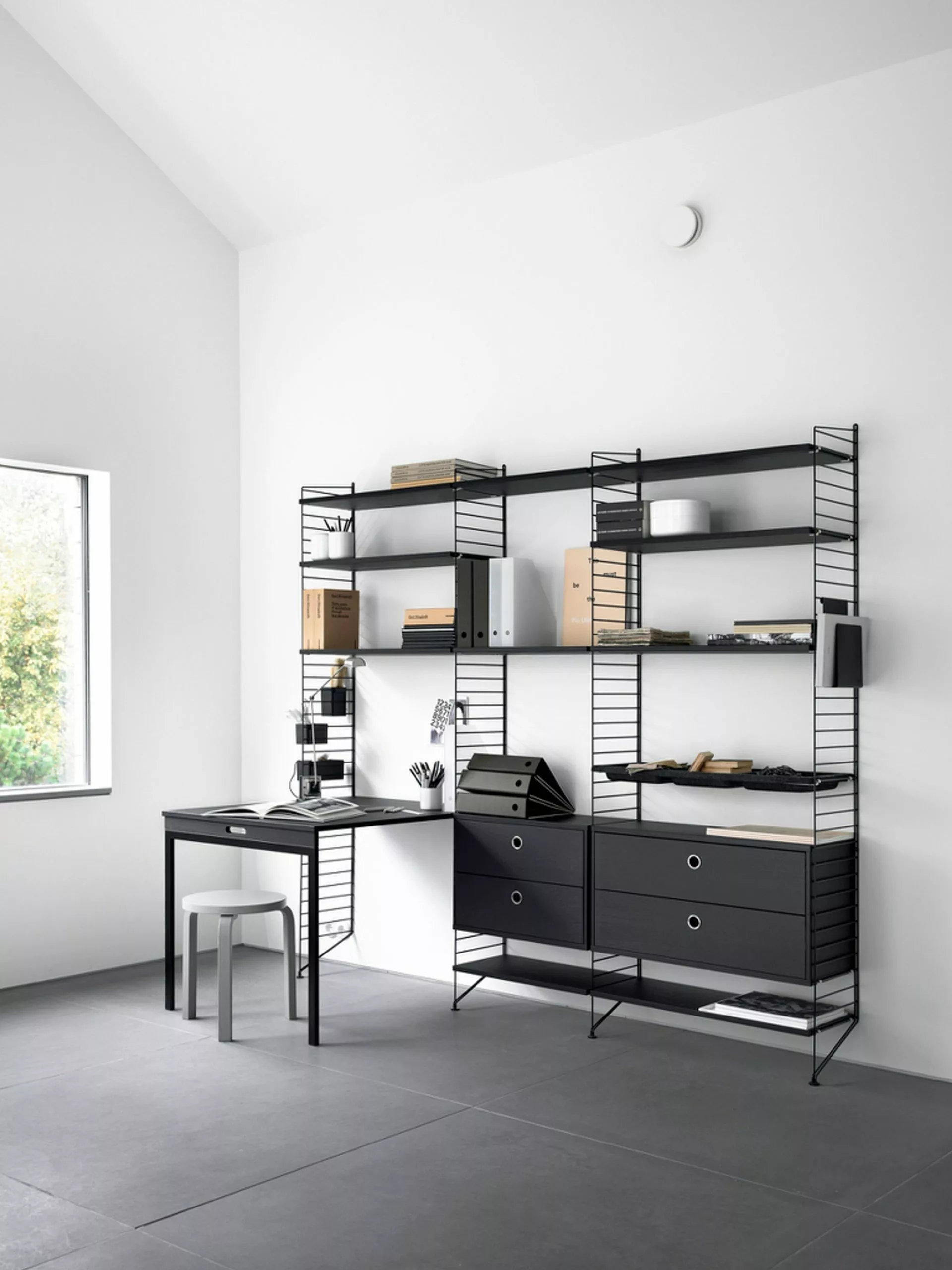 Great combinations from String Furniture's series Workspace. All combinations are available in several different color combinations, contact us for more information. The two combinations E & B differ in their own way, from the normal office.